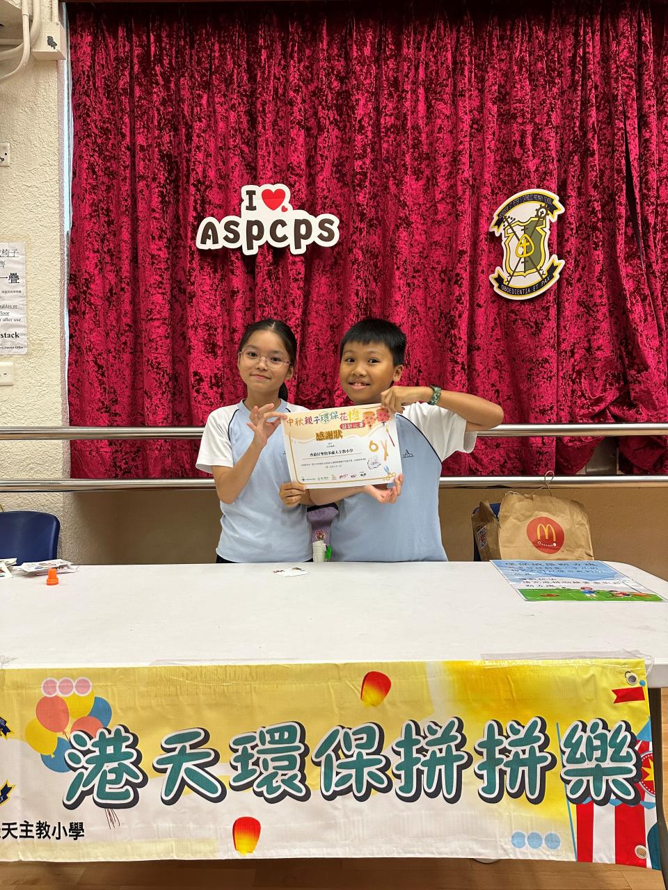 08/09/2024(日)綠在鴨脷洲及香港南區各界聯會於利東社區會堂舉辦了「親子中秋環保花燈設計比賽頒獎禮暨中秋嘉年華」,本校亦在場擺設攤位,藉此向公衆推廣可持續發展的概念。本校4D班學生陳秋玥亦於親子中秋環保花燈設計比賽中獲得優異獎。當天除了一眾得獎者,參與活動的坊眾人數眾多,氣氛熱烈,歡度了一個充滿歡樂的周末。