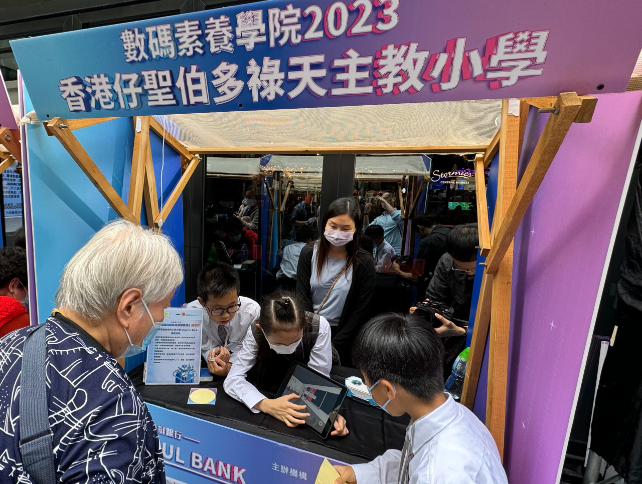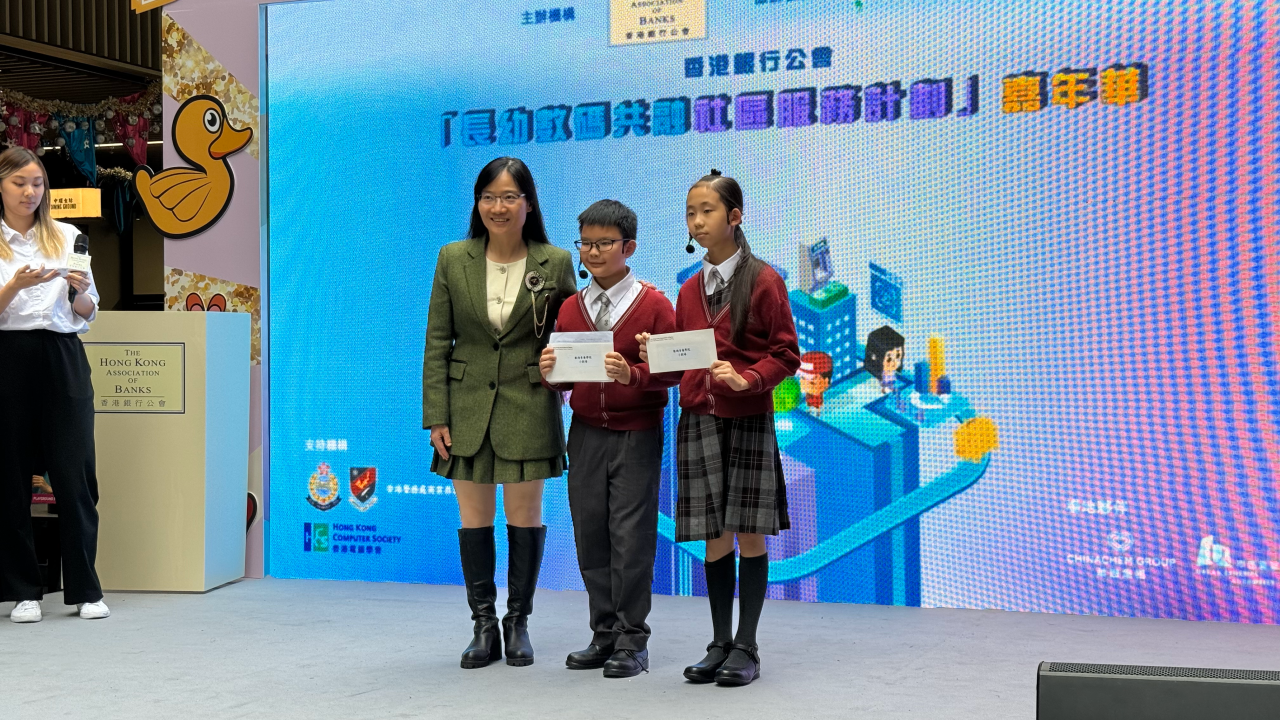 本校學生代表於十月份參與由香港銀行公會主辦,香港青年協會協辦的「數碼素養學院」。經過一連串的數碼編程培訓後,成功完成模擬數碼銀行的成品。為嘉許參與計劃的學員,主辦單位於13/12/2023(三)及14/12/2023(四)在中環街市中庭舉行「長幼數碼共融社區服務計劃」嘉年華。