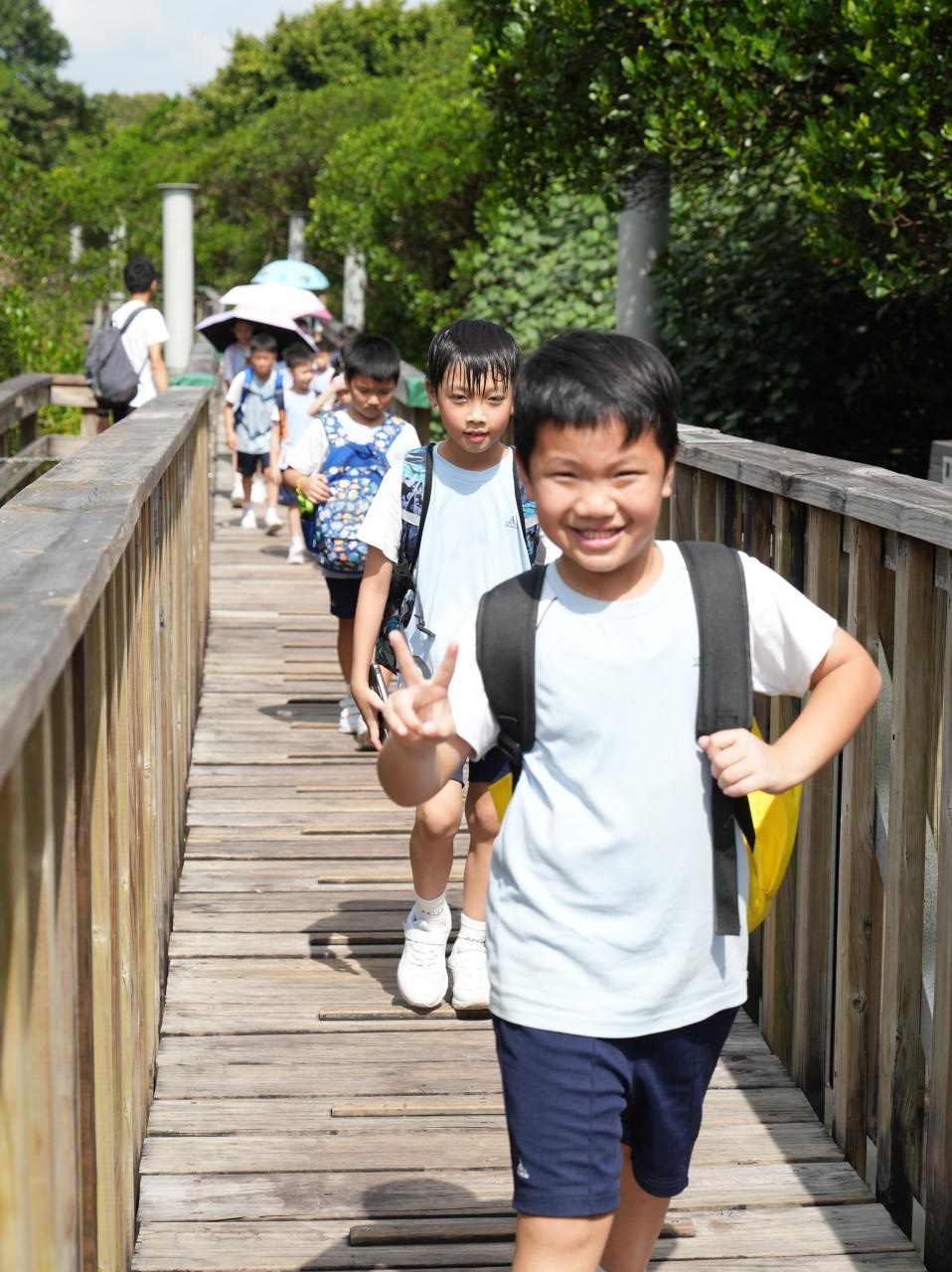 上學期本校安排了三年級學生到香港濕地公園進行實地考察,讓他們觀察不同種類的動植物,尤其是野生生物和其生態,認識濕地生態系統的多樣性,從而教育他們愛護環境和自然保育的重要性。 下學期則安排了學生到香港歷史博物館裏的國家安全展覽廳,讓他們明白國家安全的重要性,從而培養他們成為良好的公民。