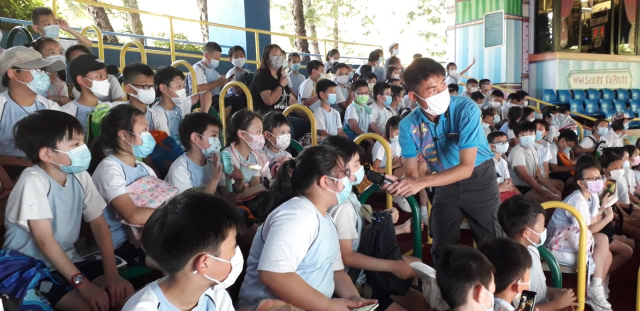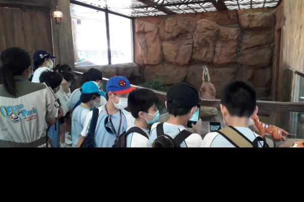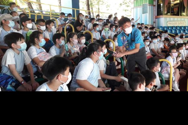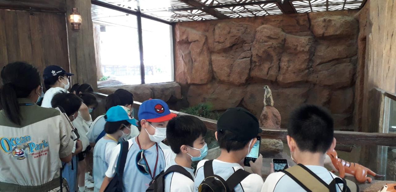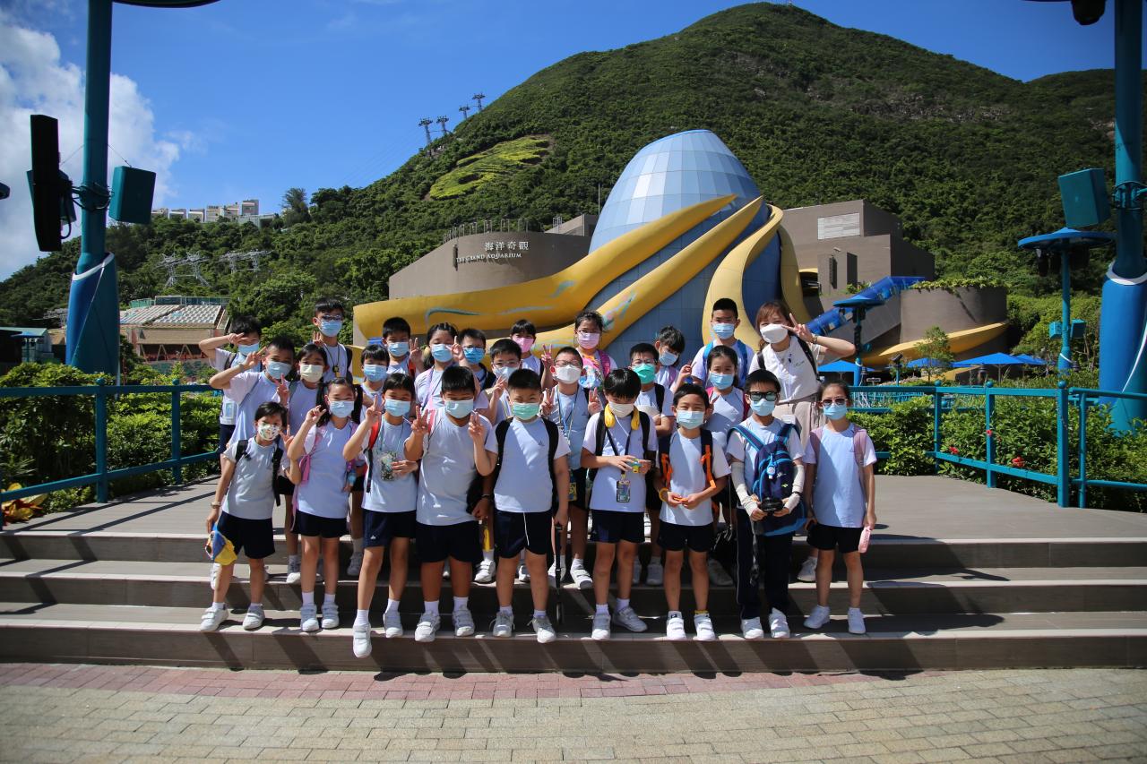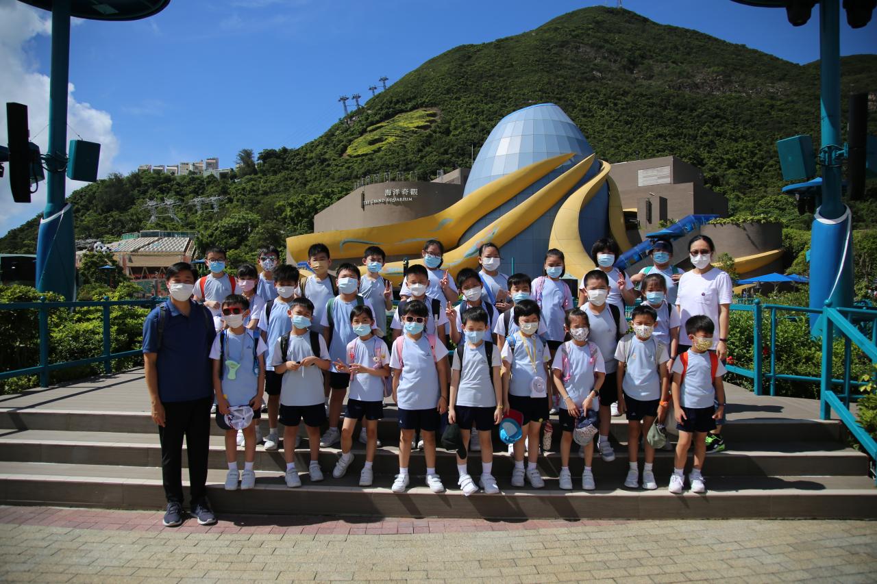 三年級同學於7月12日到海洋公園參加「熱帶雨林互動講座」。在講座中,同學透過互動遊戲,認識熱帶雨林動物—樹懶和金剛鸚鵡的特徵。接著,同學們再到熊貓之旅探訪國寶大熊貓盈盈和樂樂。還有他們的鄰居小熊貓、鱷魚等有趣的動物。雖然當天天氣酷熱,但同學們都十分投入是次活動。