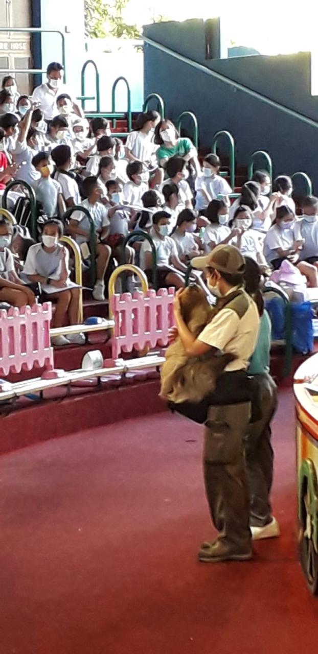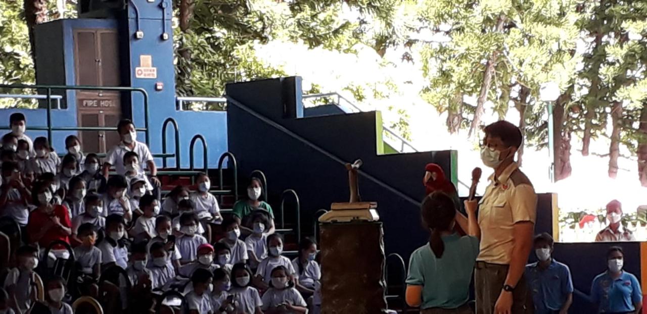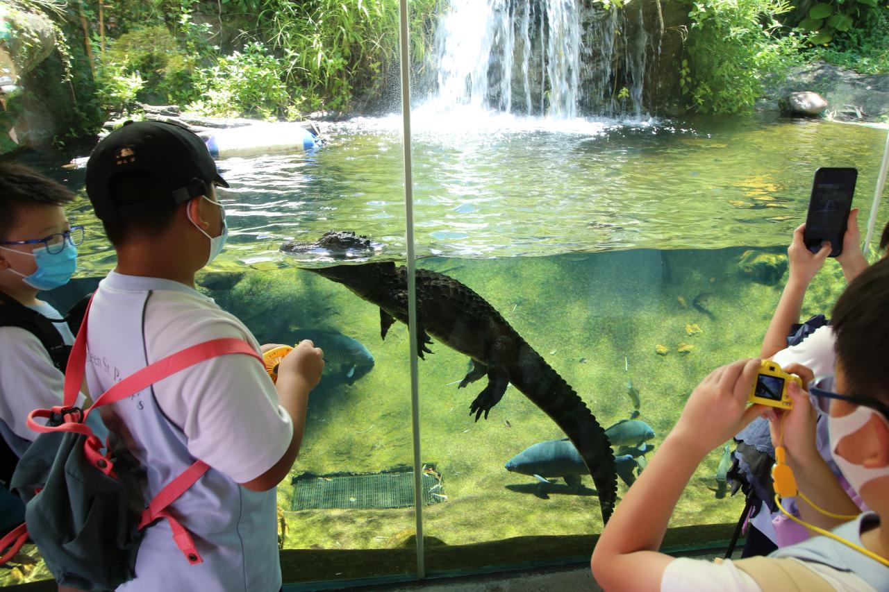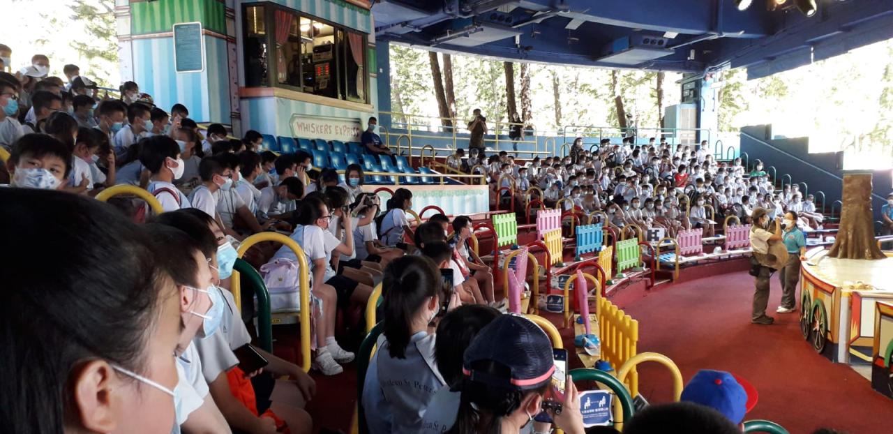 三年級同學於7月12日到海洋公園參加「熱帶雨林互動講座」。在講座中,同學透過互動遊戲,認識熱帶雨林動物—樹懶和金剛鸚鵡的特徵。接著,同學們再到熊貓之旅探訪國寶大熊貓盈盈和樂樂。還有他們的鄰居小熊貓、鱷魚等有趣的動物。雖然當天天氣酷熱,但同學們都十分投入是次活動。