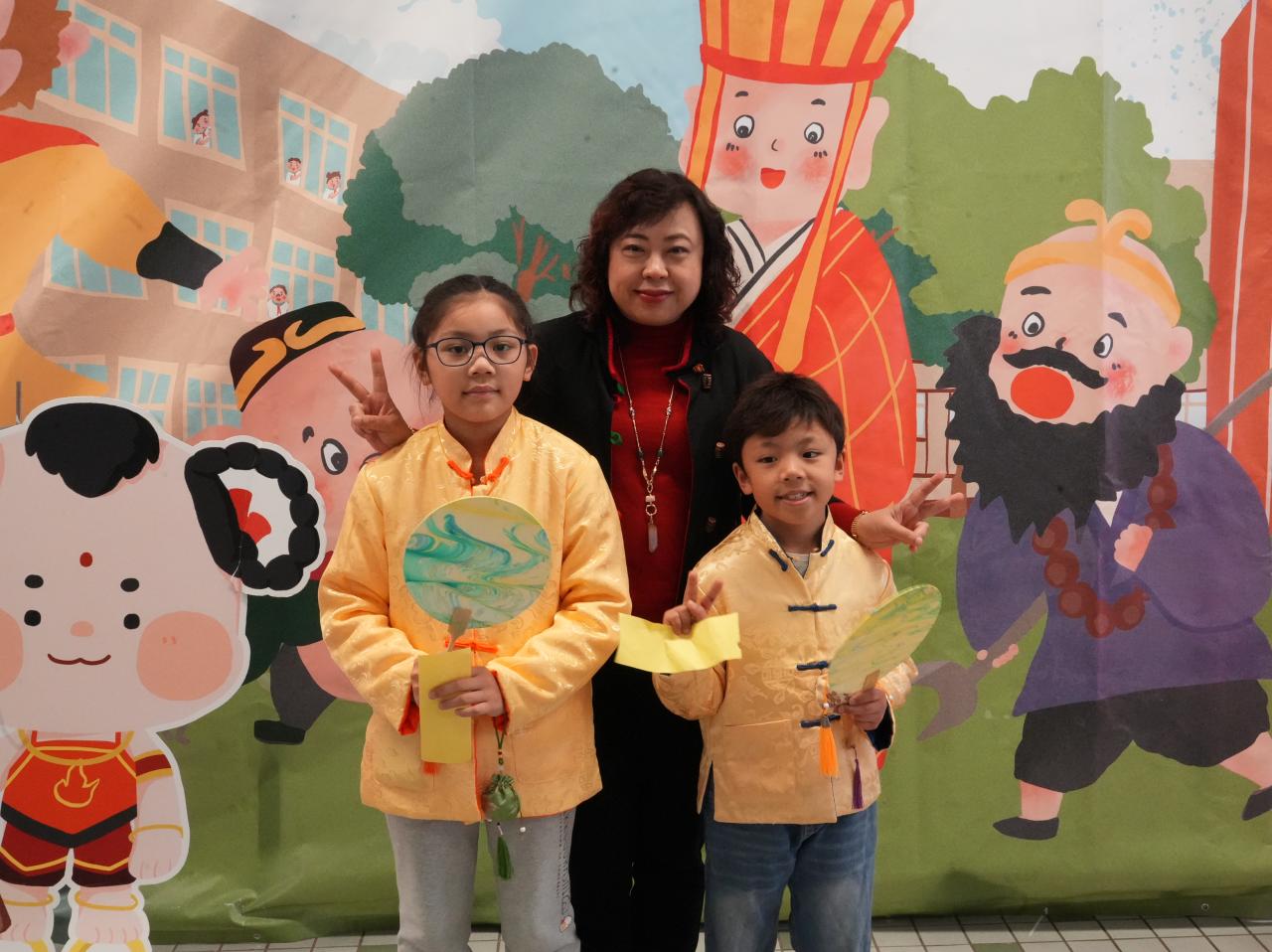 二月十二日是本校的中華文化日,主題是「孫悟空遊港天」,學生都樂在其中。當天節目豐富,設有十個普通話及文化攤位。學生除了可一嘗糖畫的滋味,也可動手製作漆扇,更可以換上不同的漢服,形象立刻煥然一新呢!