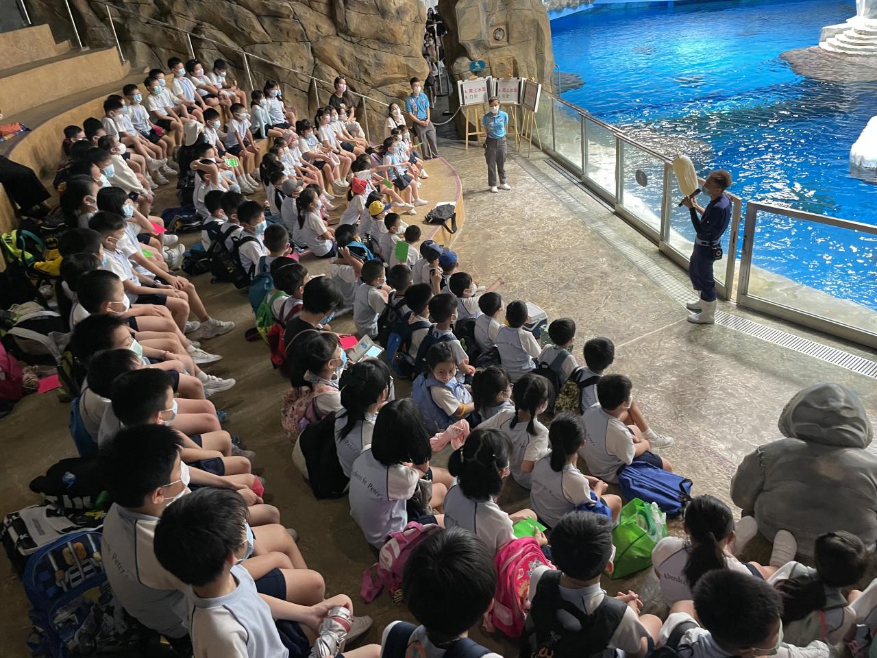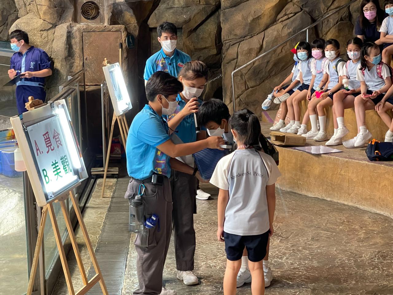 疫情之下,校方仍期望透過活動,鼓勵學生正面積極學習;故在試後籌辦海洋公園「極地互動講座」,邀請二年級學生參加。在「極地互動講座」中,參加者透過互動遊戲,深入認識極地動物特徵,以及實踐環保生活的重要性;同時可近距離觀察極地動物,了解護理員的日常護理工作。
