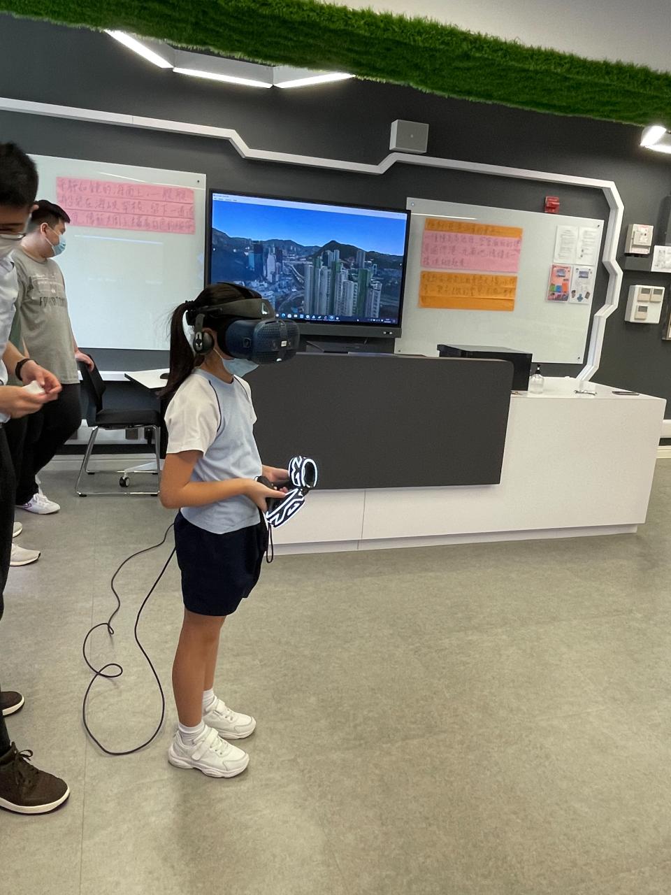 為了提高五年級學生學習的趣味,以及豐富他們的眼界,教師教授遊記單元時,使用了VR虛擬實景技術。在疫情下,讓學生能「走出」課室,遊覽香港著名景點,從而感受課文中作者描繪的迷人景色。