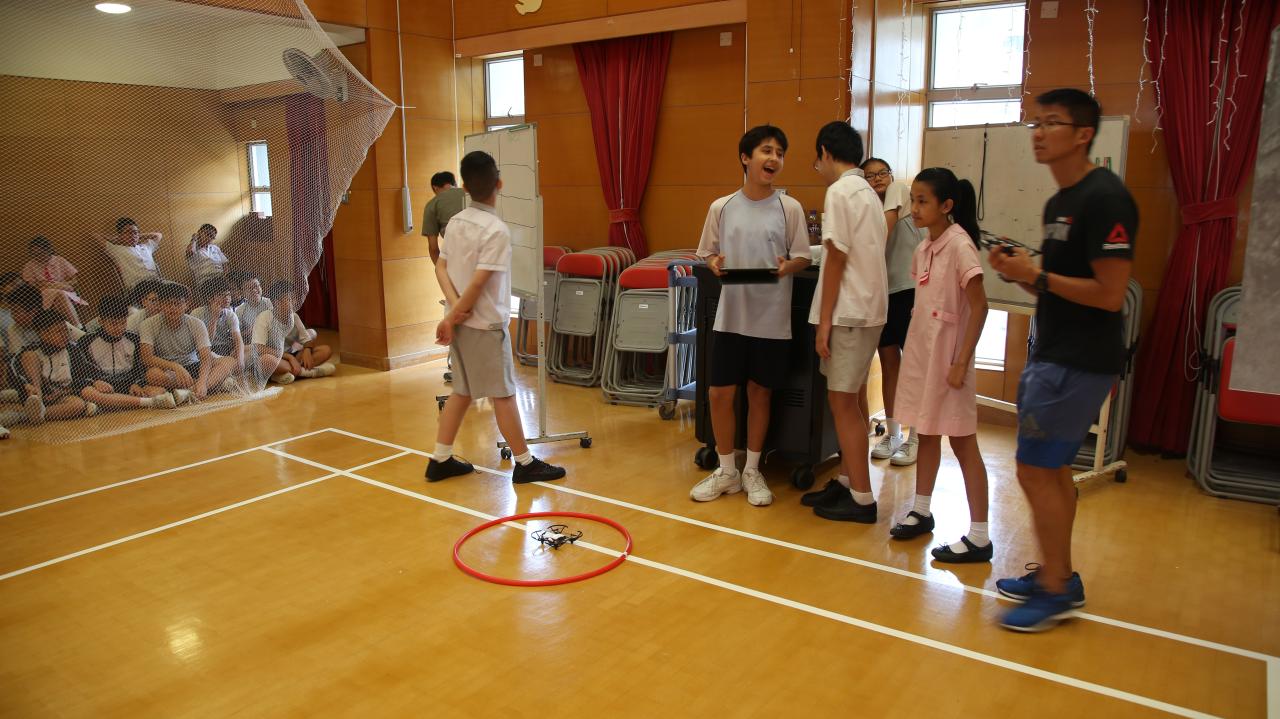 比賽分為兩部分,分別是用平板電腦控制航拍機作障礙賽,另外更用編程方法控制航拍機進行花式賽,以最快速度完成航程者為勝。當天每位參賽者都非常投入,盡力完成比賽、旁觀的同學都為他們打氣,場面十分熱鬧。