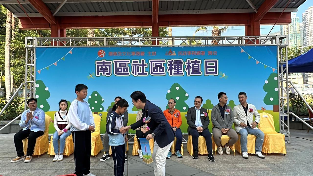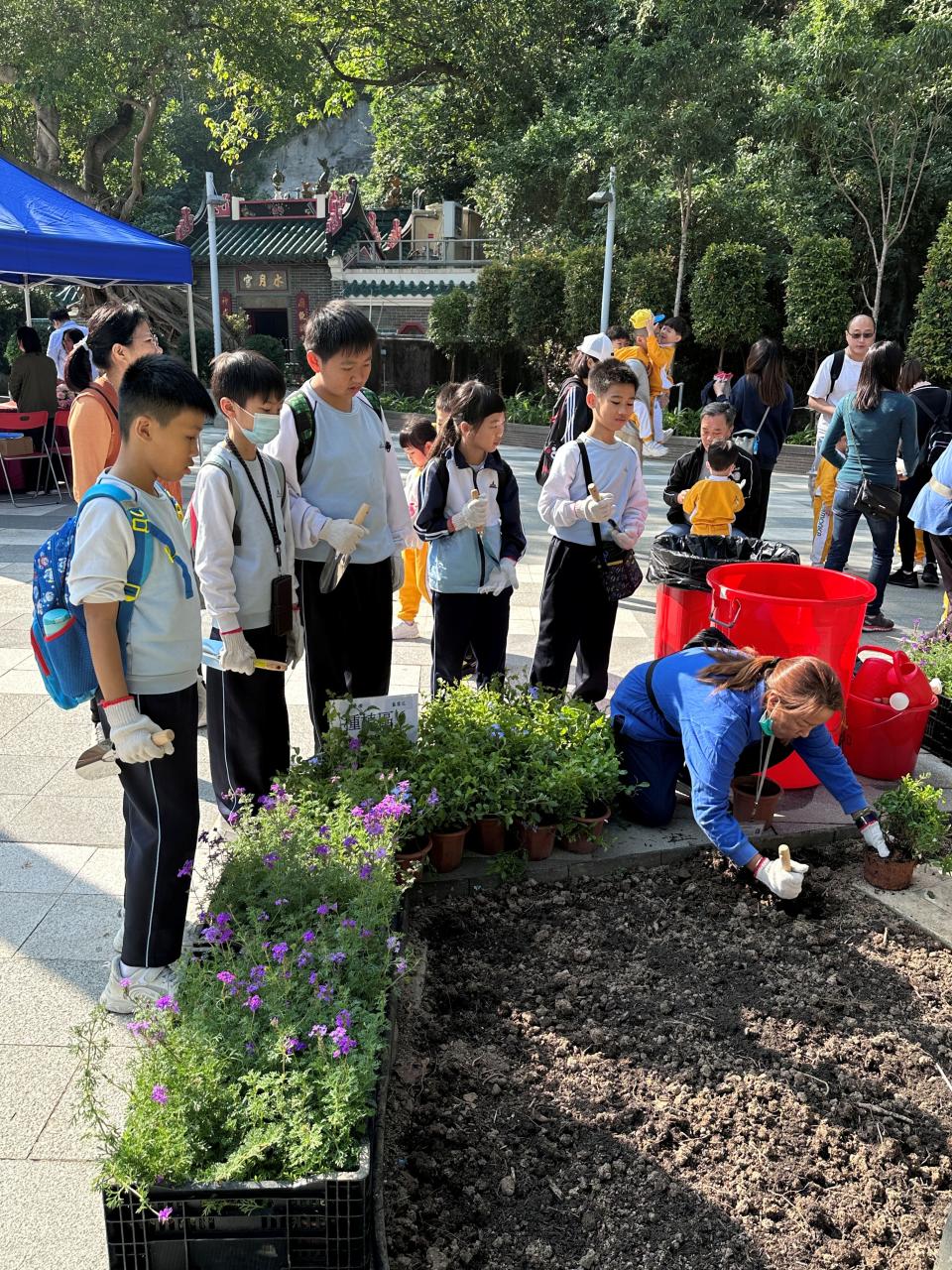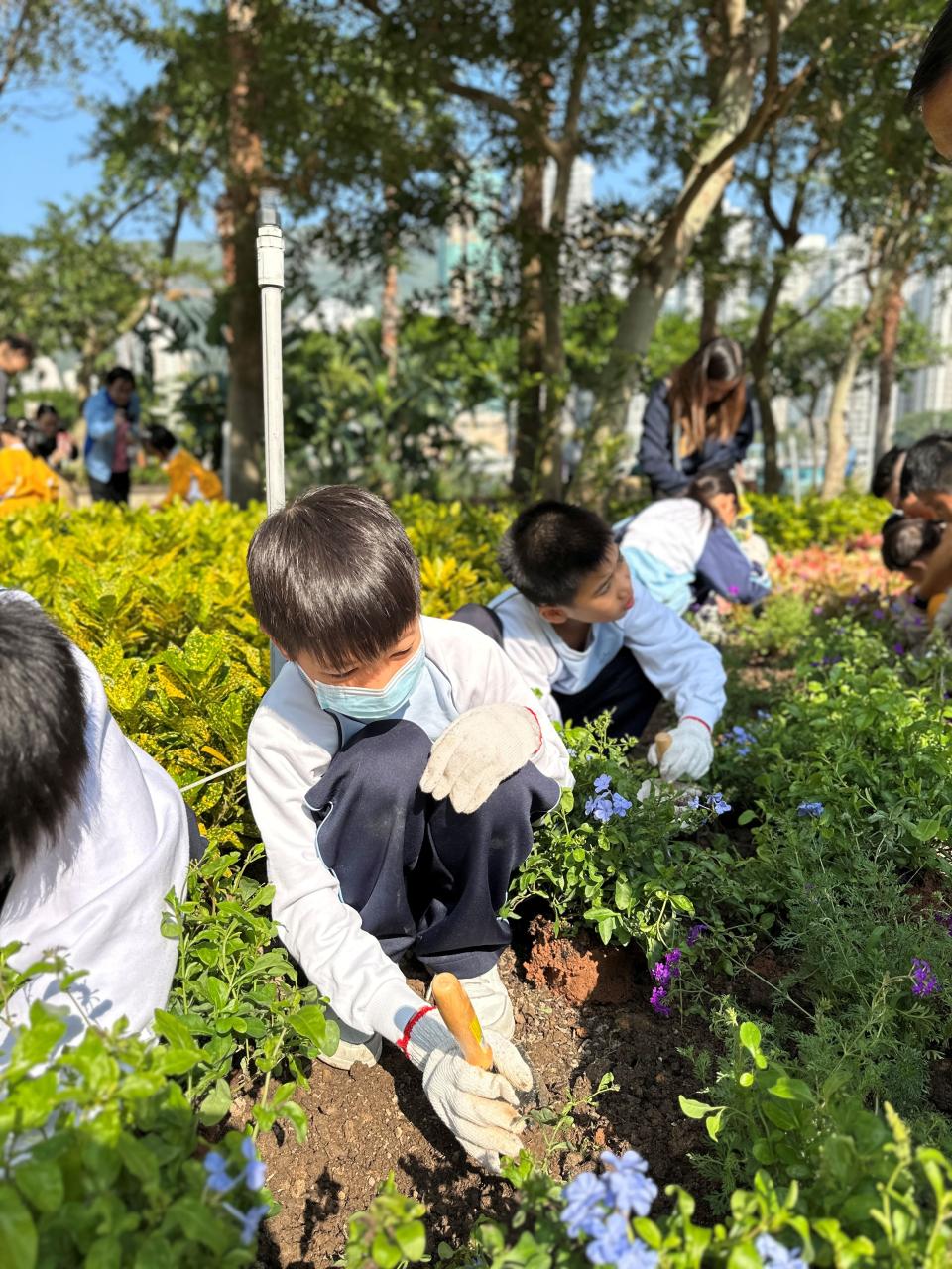 為推行環境教育,提高學生的綠化意識,本校於07/12/2024(六)安排學生參加由康樂及文化事務署舉辦的「南區2025年社區種植日」,於鴨脷洲風之塔公園裏的花床種植時花。當日出席的學生身體力行,支持綠化社區,種植了多棵藍雪花和美女櫻。