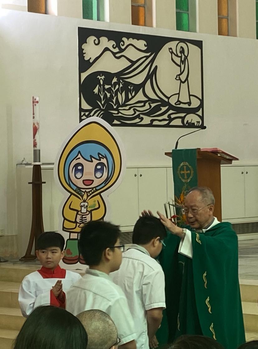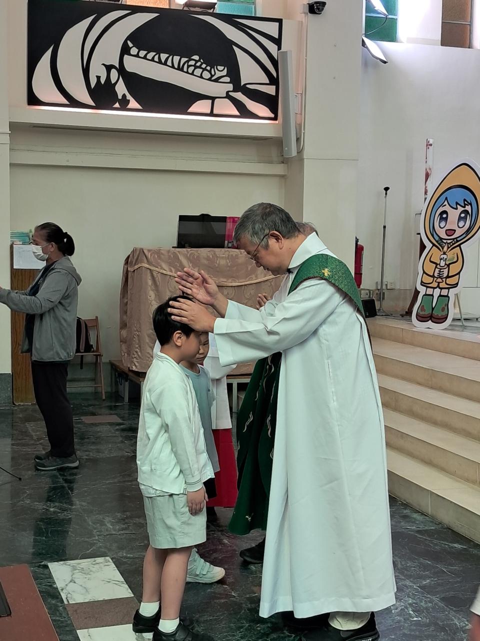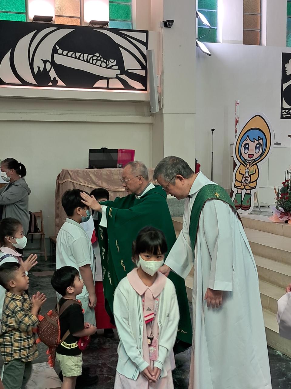 26/10/2025(日)為教會常年期第三十主日,五十多位師生及家長到聖伯多祿堂,參與由校監伍國寶神父主禮的感恩祭。伍神父當日以福音—路加福音18:9-14教導我們要保持謙卑、愛主愛人。伍神父隨後在感恩祭中覆手祝福在場同學。