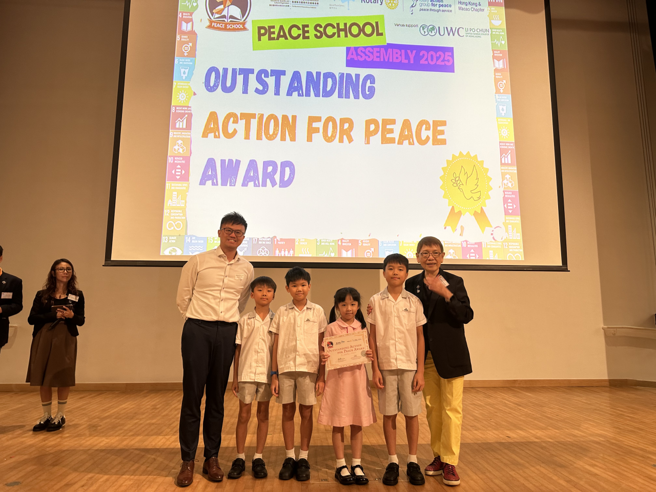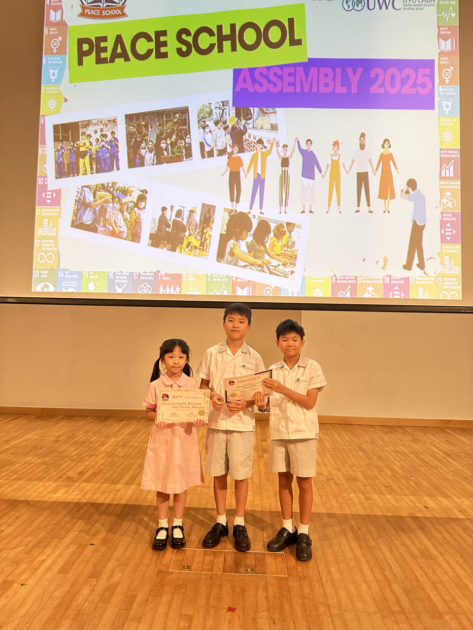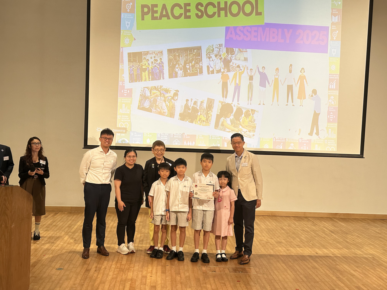 和平學校高峰會 和平學校高峰會上,本校載譽而歸!13/09/2025(六),已成功獲得和平學校計劃的認證,並且獲邀在峰會分享經驗。6A 胡淦泓、4E 譚泓晞、2C 王嘉莉三位同學的精彩分享,經公眾投票,為學校贏得「Outstanding Action For Peace Award」榮譽!