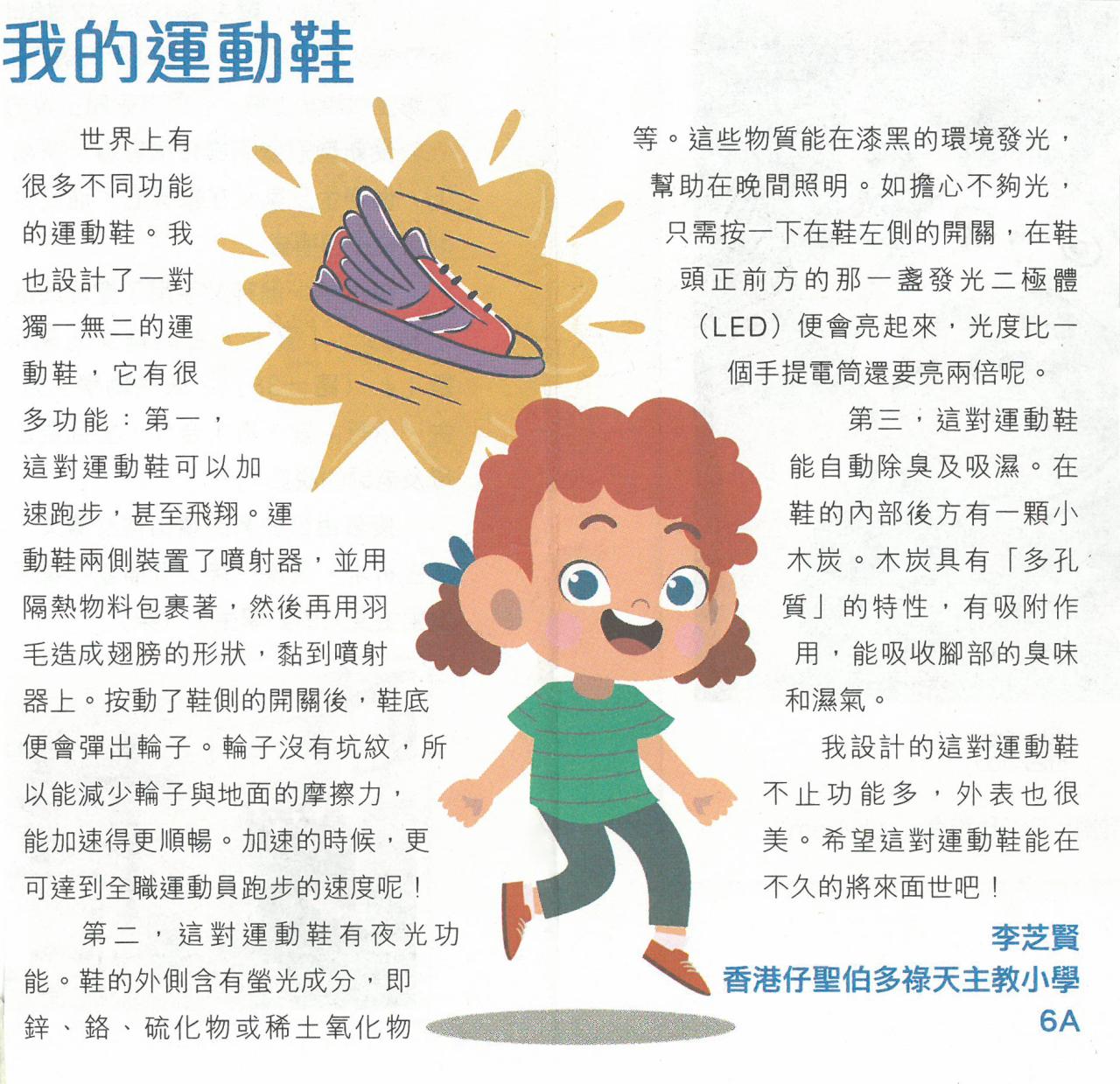 本校 6A班李芝賢同學成功在最新一期的《喜樂少年》中投稿,文章名為《我的運動鞋》。