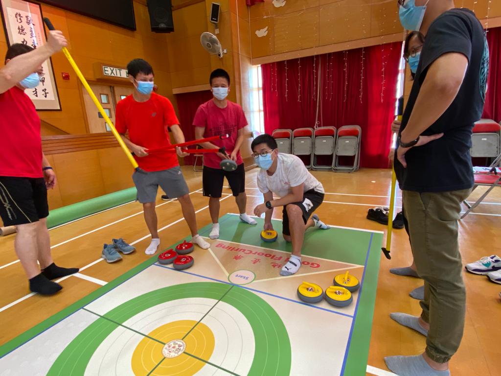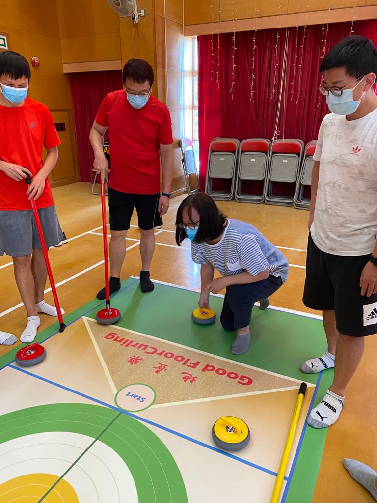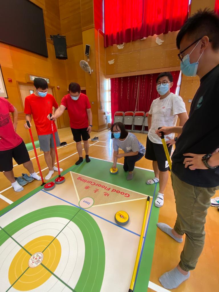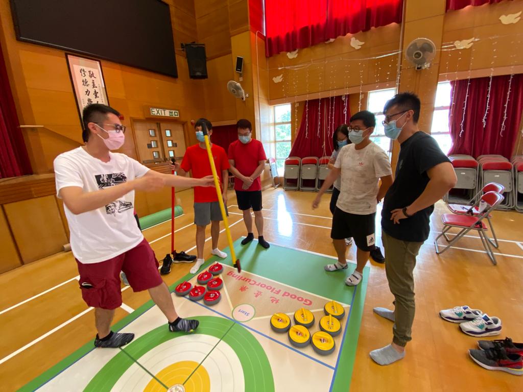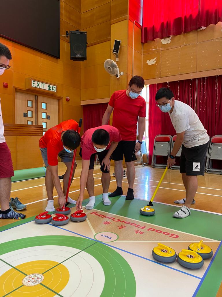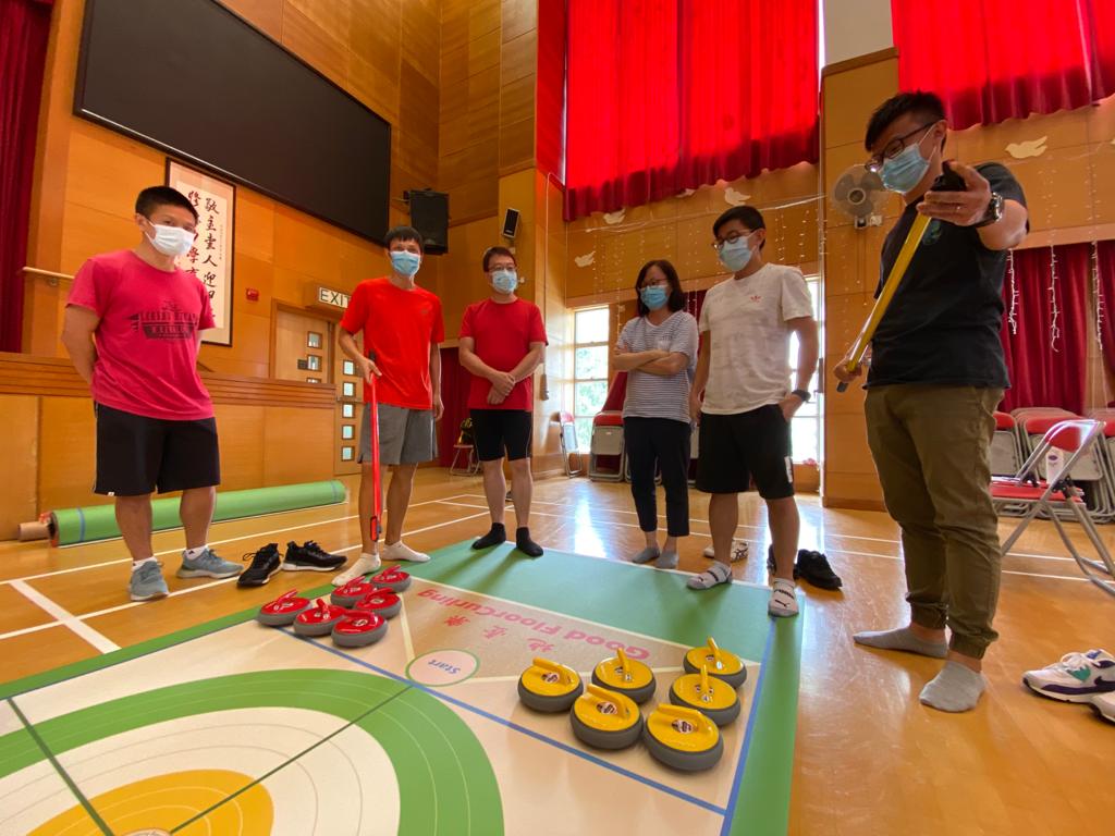 在暑假期間,各位體育老師都不忘裝備自己,在禮堂體驗地壺球這種新興運動,期待復課後讓同學認識這種運動。
