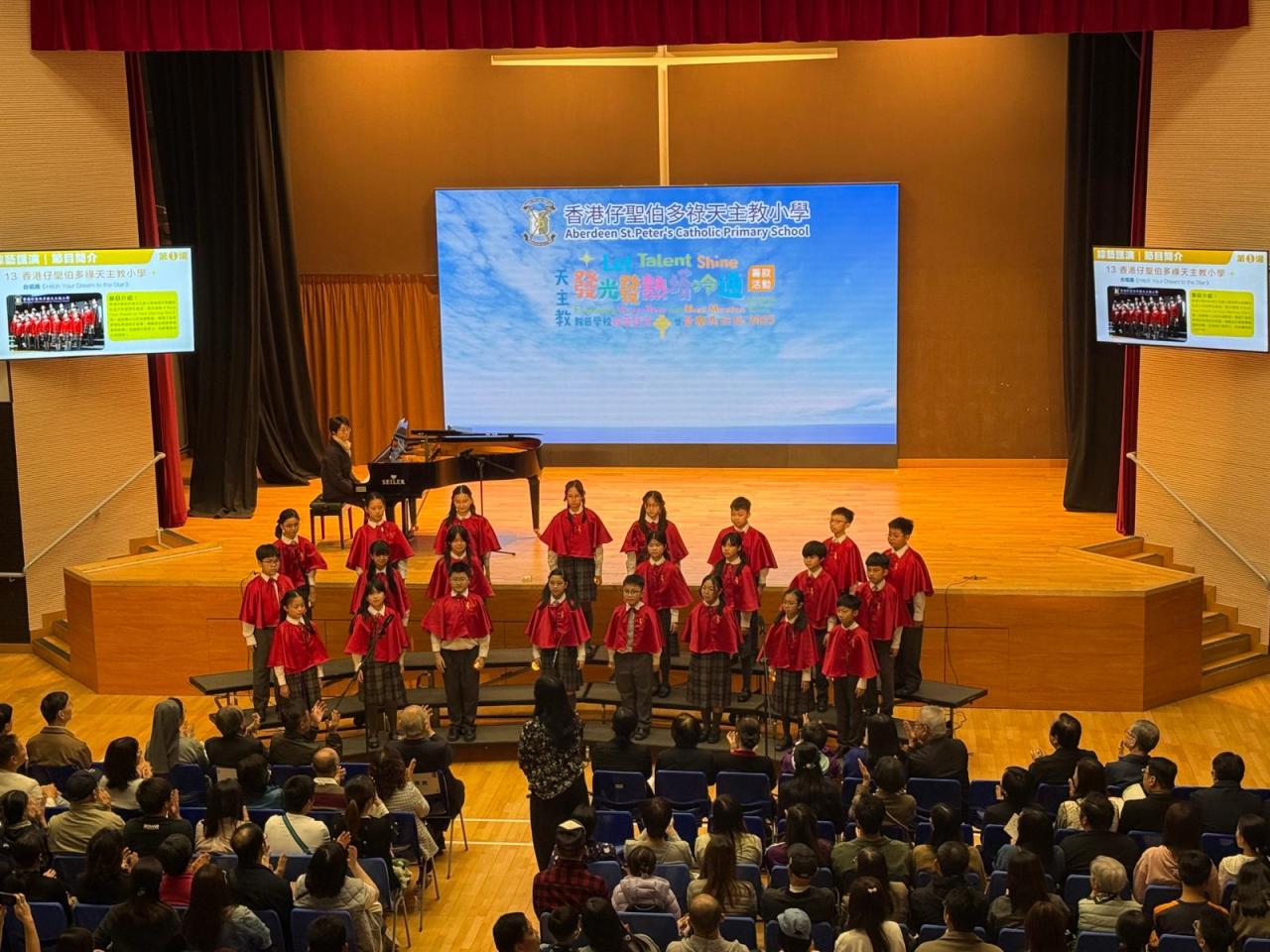 本校5A班莊楚翹同學於三月二十二日參加「天主教教區學校綜藝匯演暨音樂馬拉松籌款」活動,以小提琴獨奏形式演出。演奏曲目為小提琴曲 'Allegro Second movement from Sonata in F, Op.1 No.12, HWV370'。她的演出技藝精湛,表現自信。