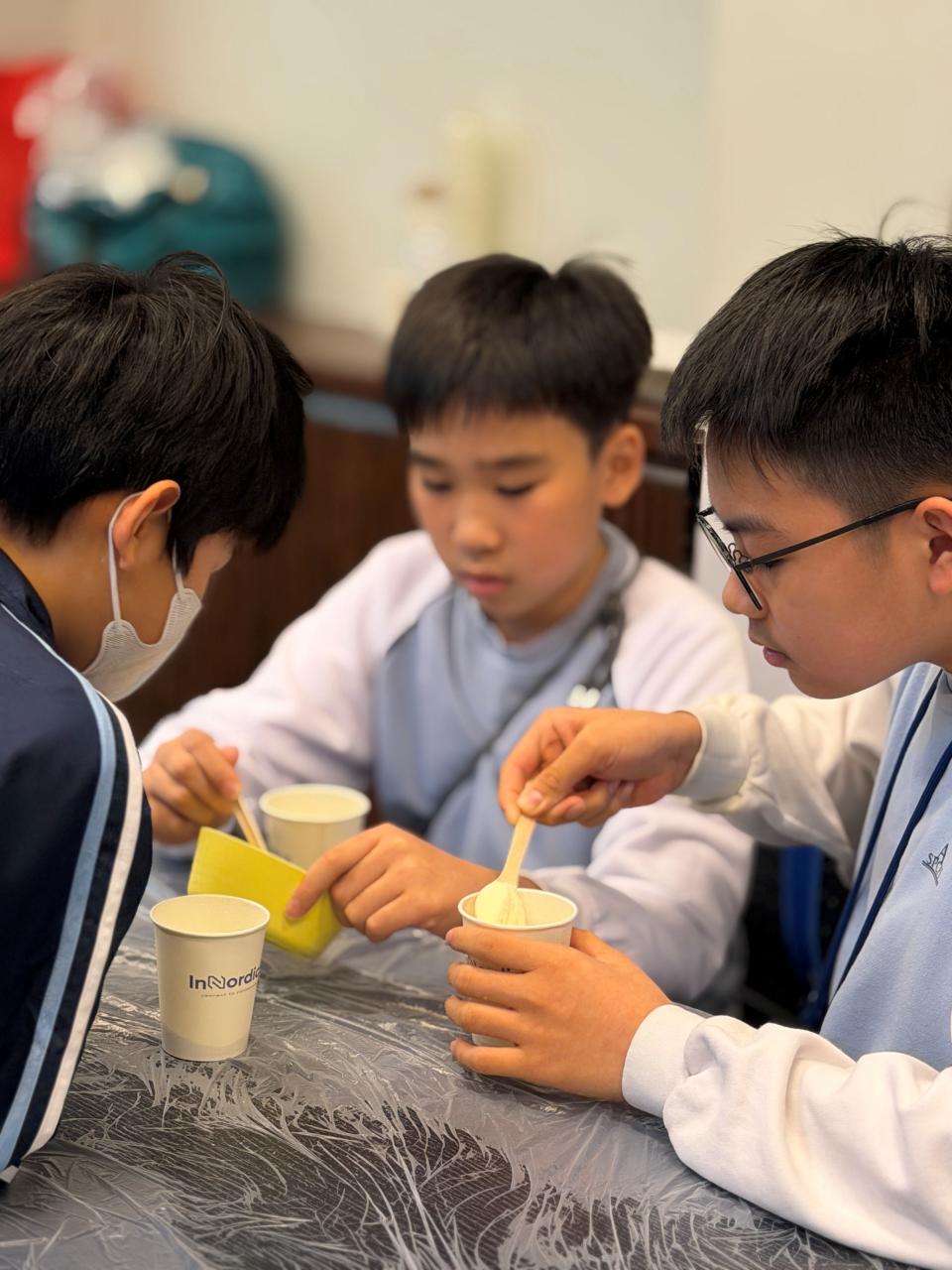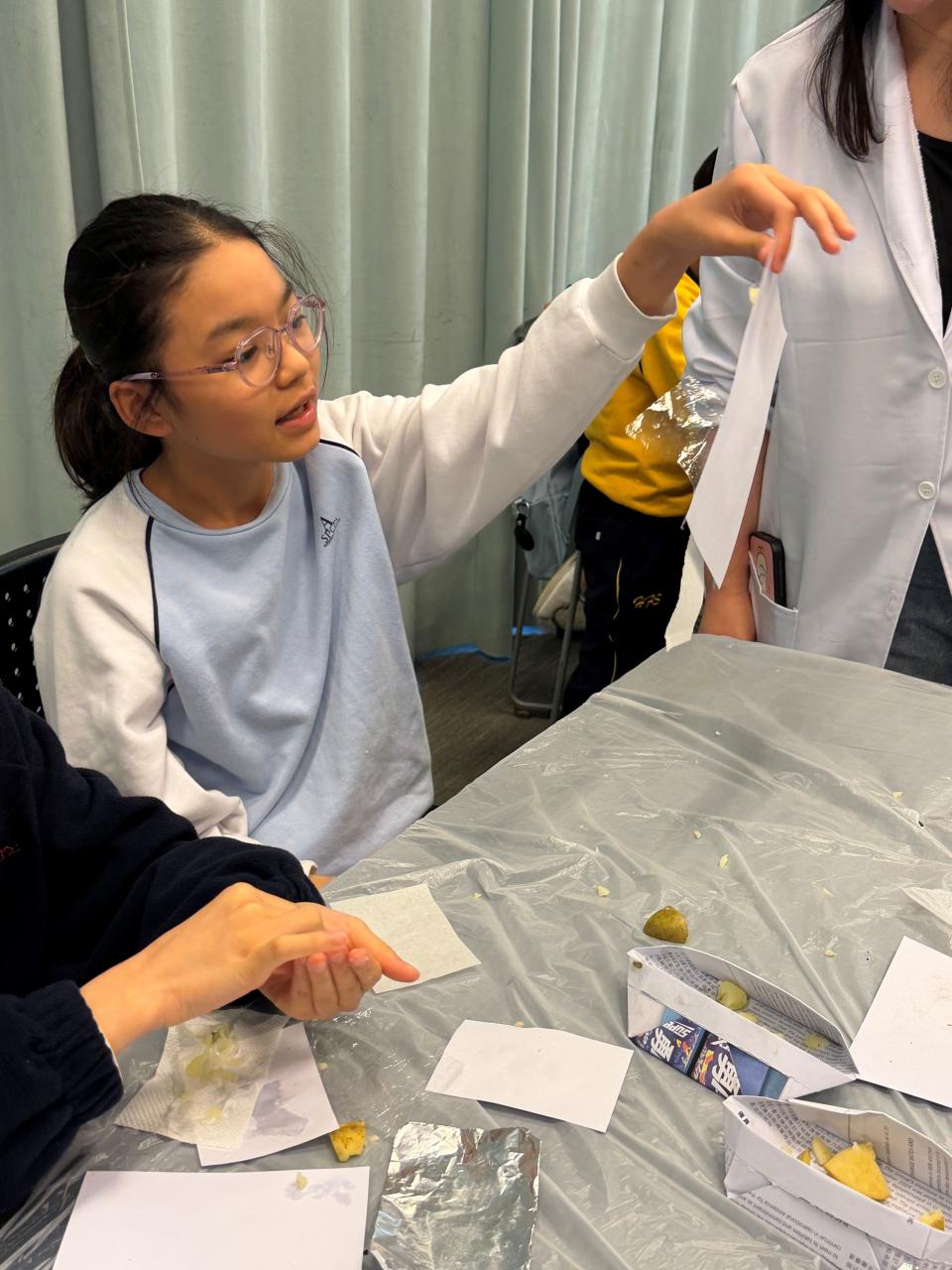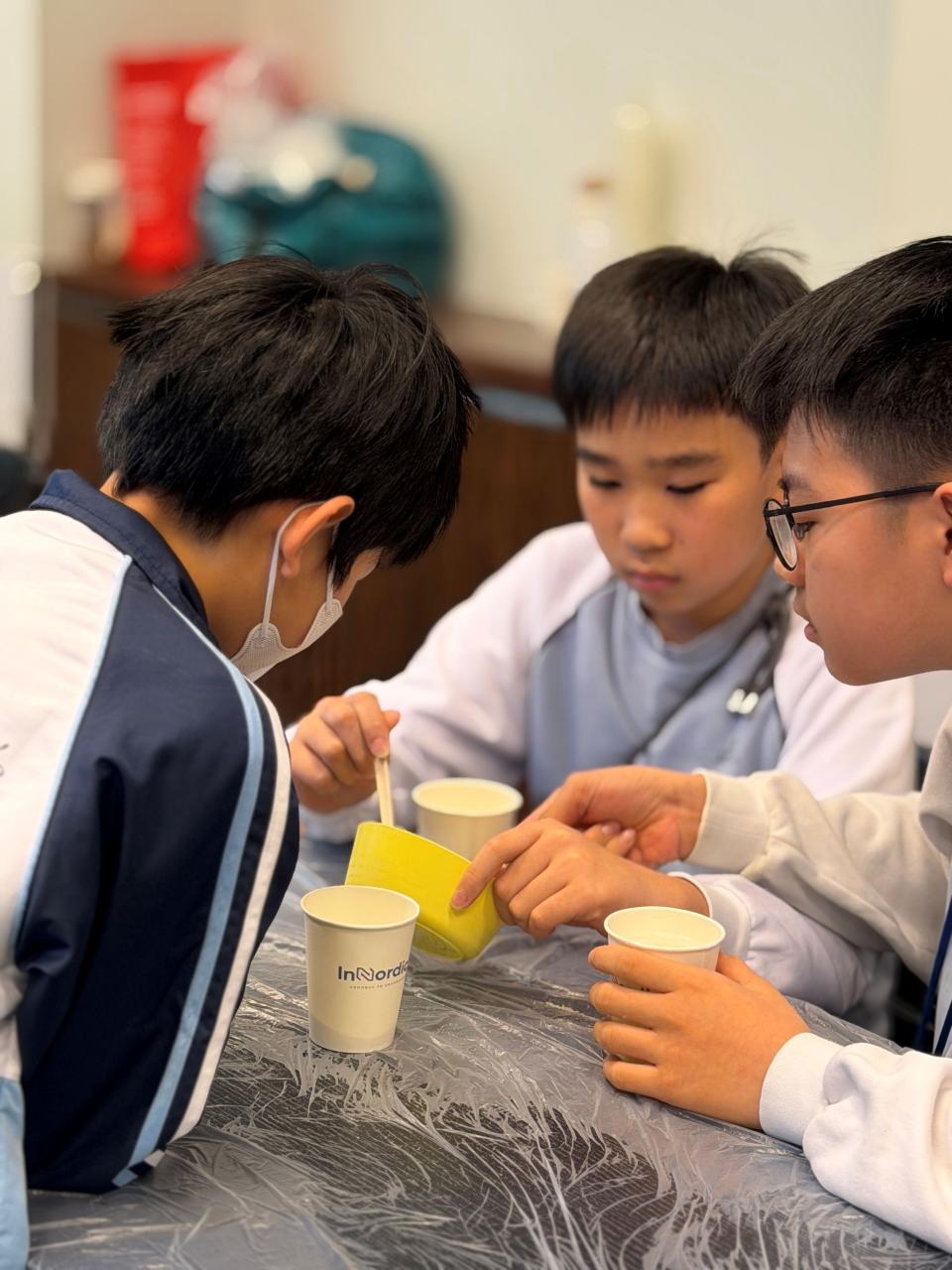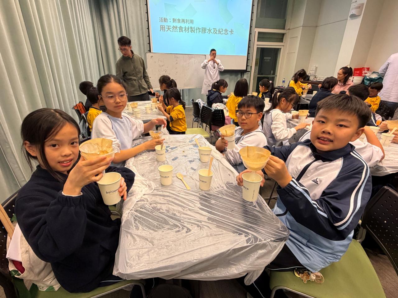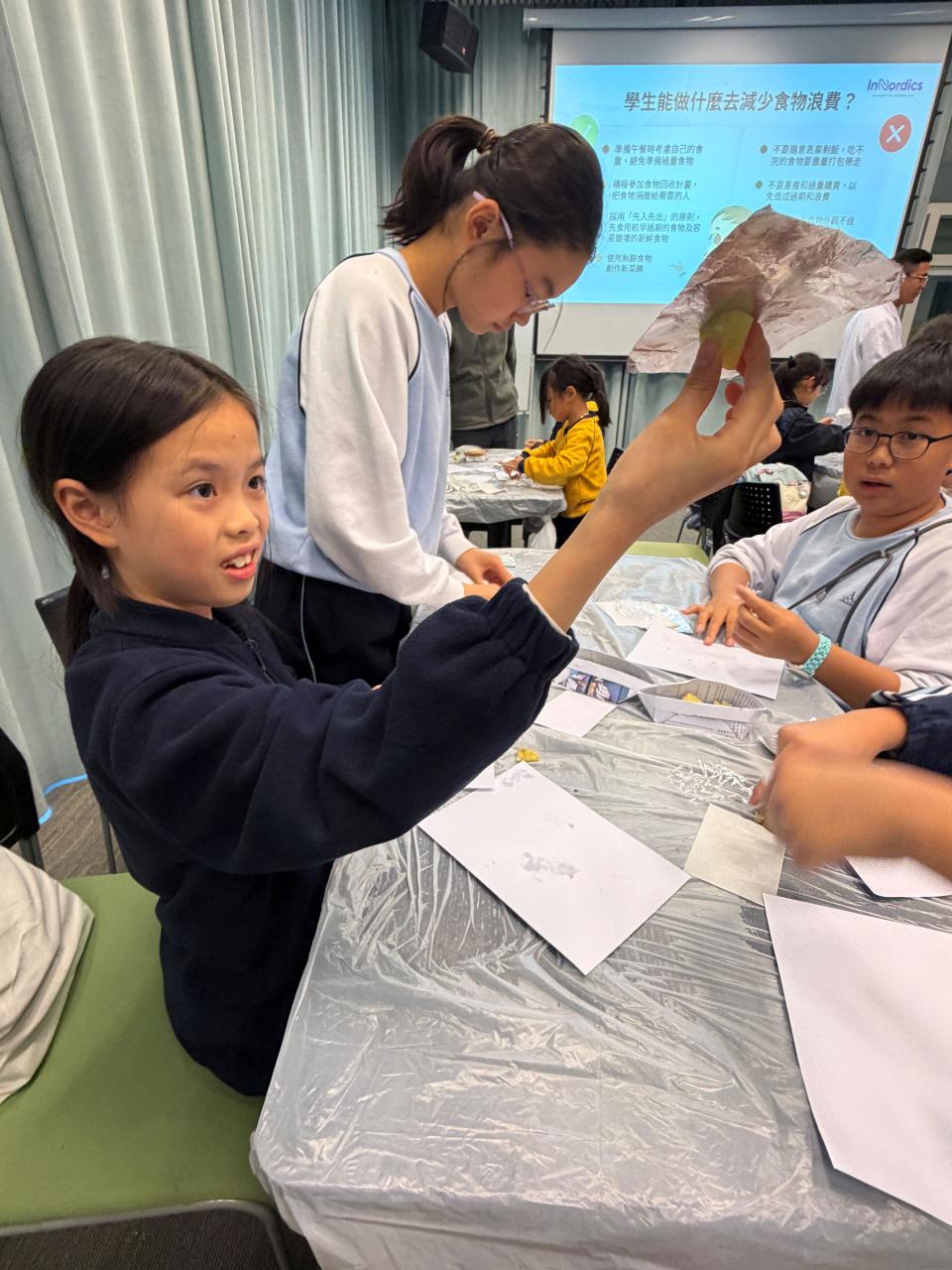 學生參加了STEM培訓工作坊。工作坊介紹了香港、芬蘭及其他北歐國家的環保概念,讓學生認識如何處理及減少廚餘。學生被分成不同小組進行匯報,向參與者分享如何在校內以3R(Reduce、Reuse、Recycle)原則推廣減少食物浪費的理念。又以芬蘭STEM教育模式,指導學生利用過期食品——薯仔和牛奶進行科學實驗。