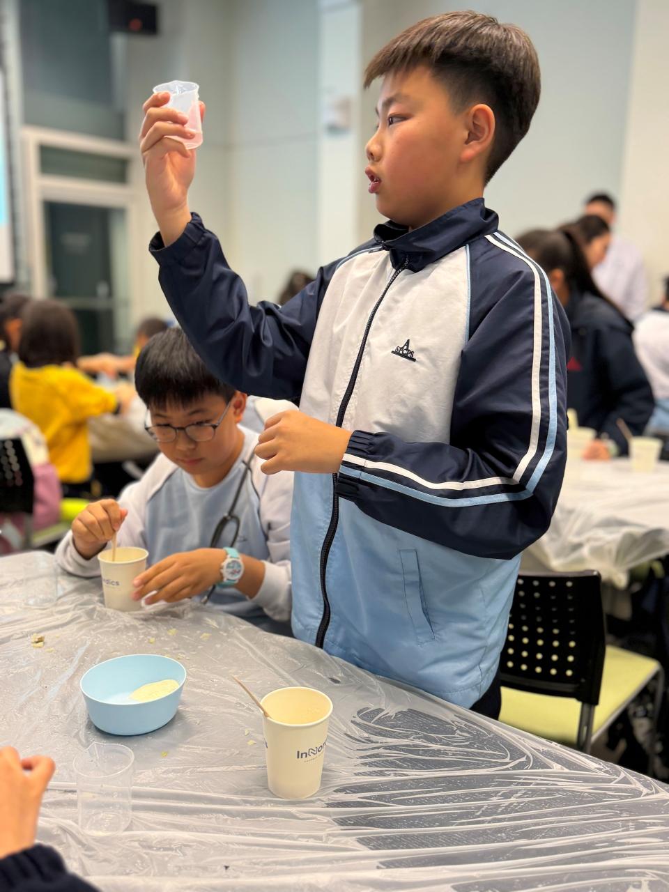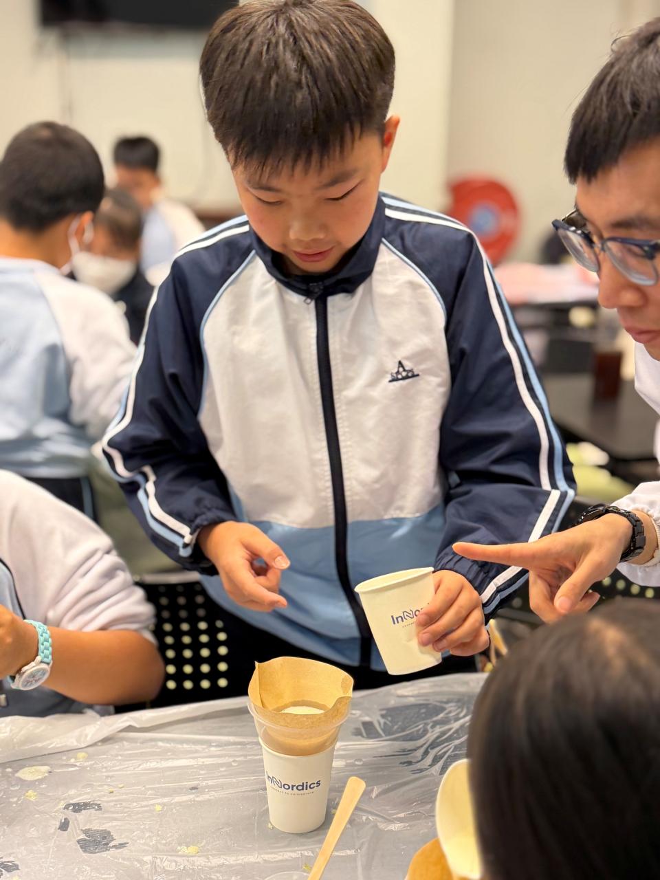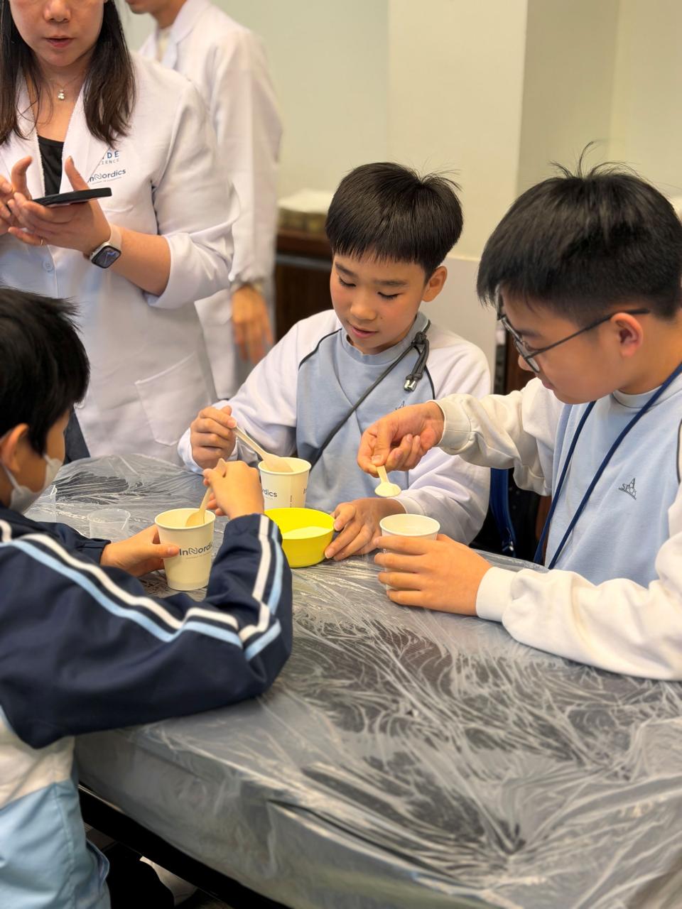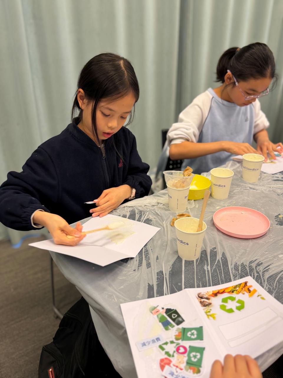 學生參加了STEM培訓工作坊。工作坊介紹了香港、芬蘭及其他北歐國家的環保概念,讓學生認識如何處理及減少廚餘。學生被分成不同小組進行匯報,向參與者分享如何在校內以3R(Reduce、Reuse、Recycle)原則推廣減少食物浪費的理念。又以芬蘭STEM教育模式,指導學生利用過期食品——薯仔和牛奶進行科學實驗。