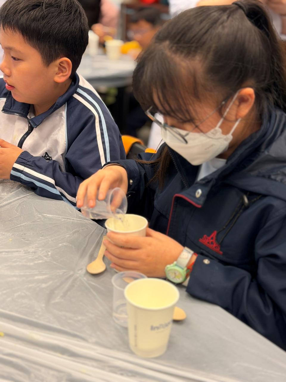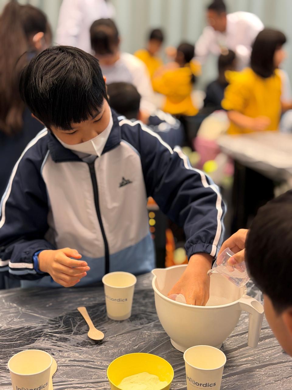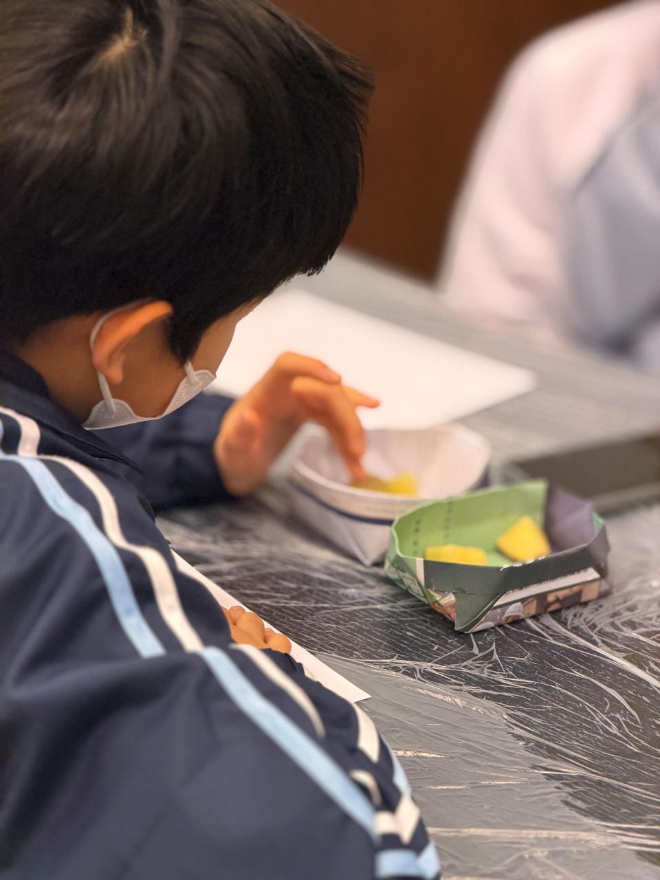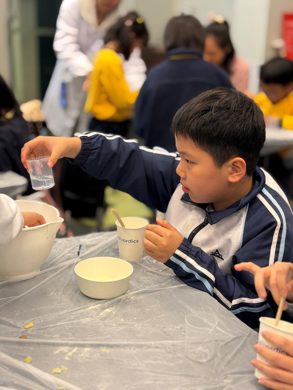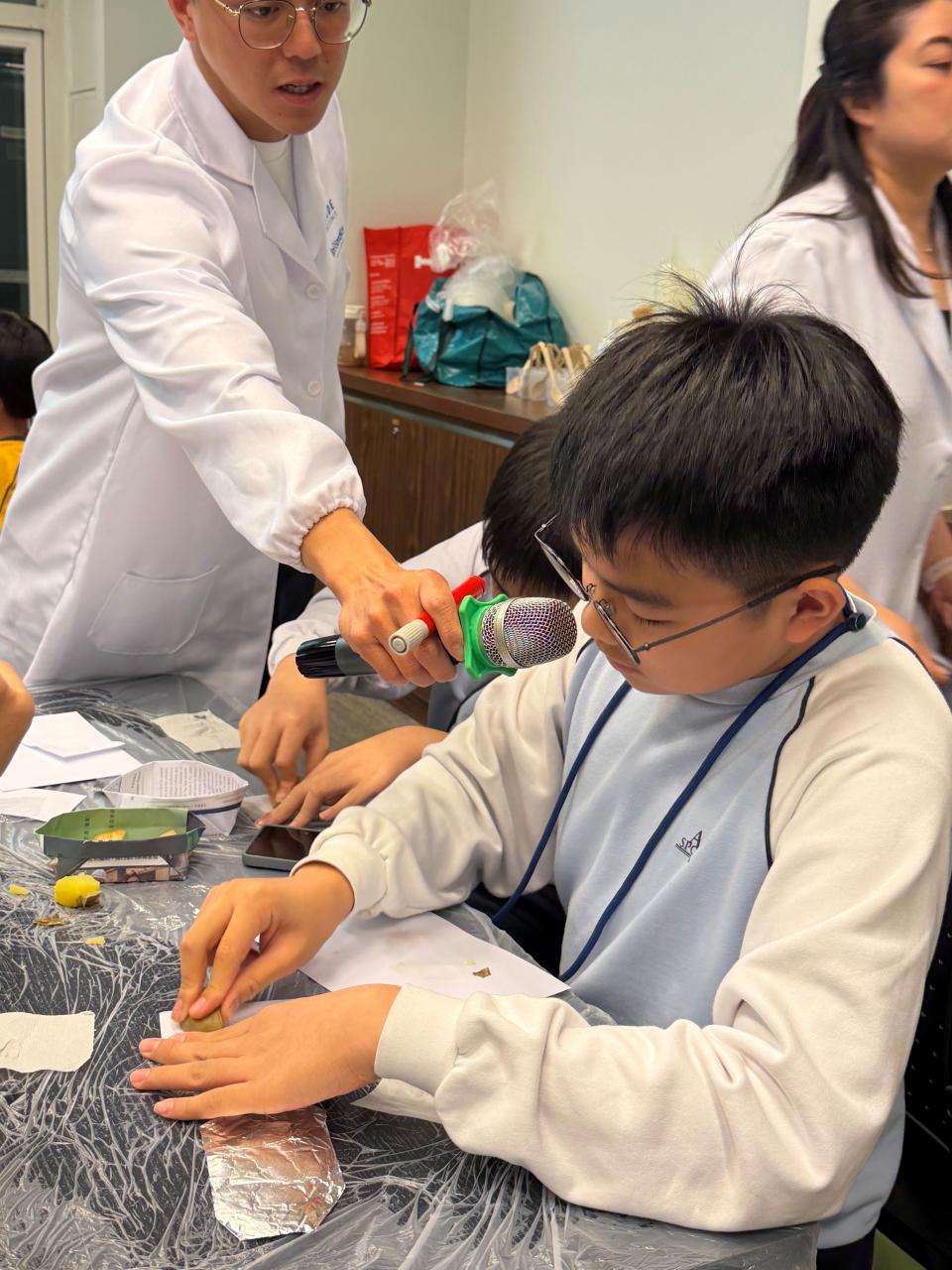 學生參加了STEM培訓工作坊。工作坊介紹了香港、芬蘭及其他北歐國家的環保概念,讓學生認識如何處理及減少廚餘。學生被分成不同小組進行匯報,向參與者分享如何在校內以3R(Reduce、Reuse、Recycle)原則推廣減少食物浪費的理念。又以芬蘭STEM教育模式,指導學生利用過期食品——薯仔和牛奶進行科學實驗。