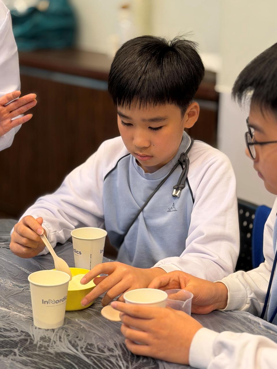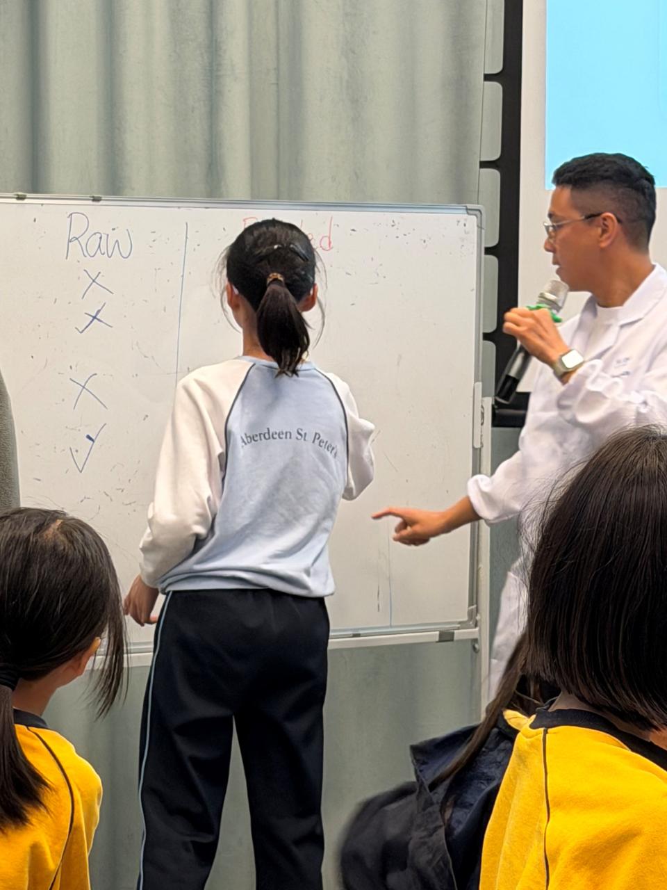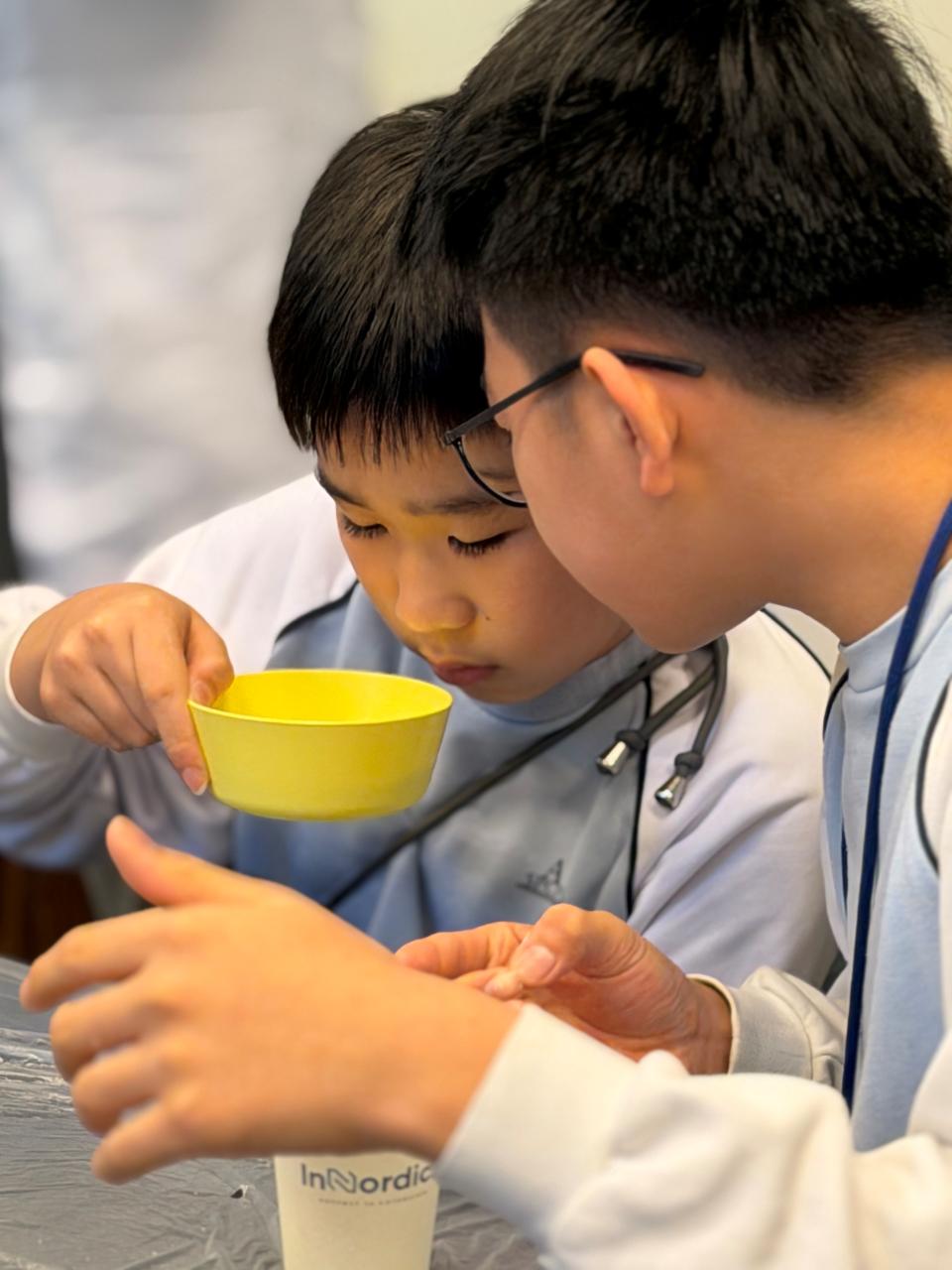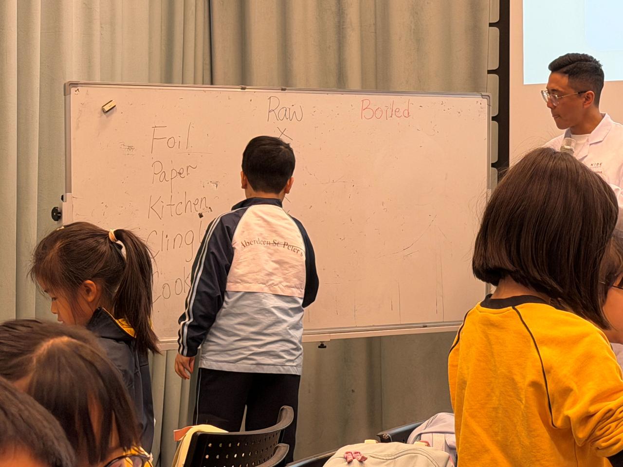 學生參加了STEM培訓工作坊。工作坊介紹了香港、芬蘭及其他北歐國家的環保概念,讓學生認識如何處理及減少廚餘。學生被分成不同小組進行匯報,向參與者分享如何在校內以3R(Reduce、Reuse、Recycle)原則推廣減少食物浪費的理念。又以芬蘭STEM教育模式,指導學生利用過期食品——薯仔和牛奶進行科學實驗。