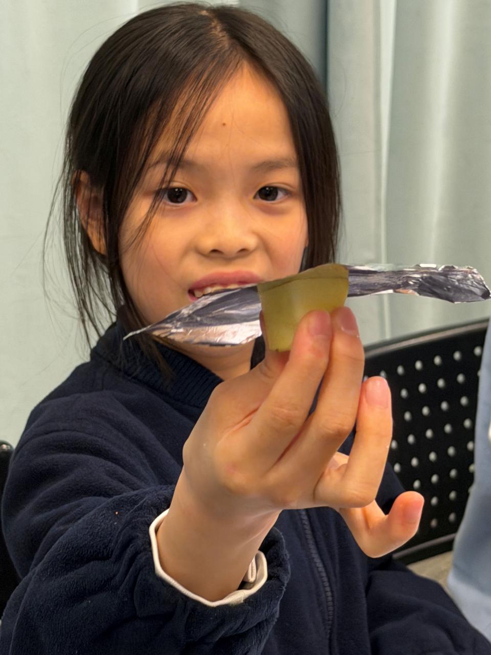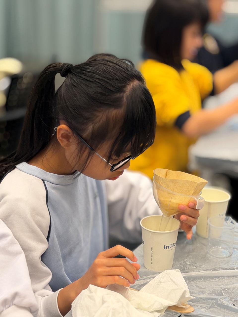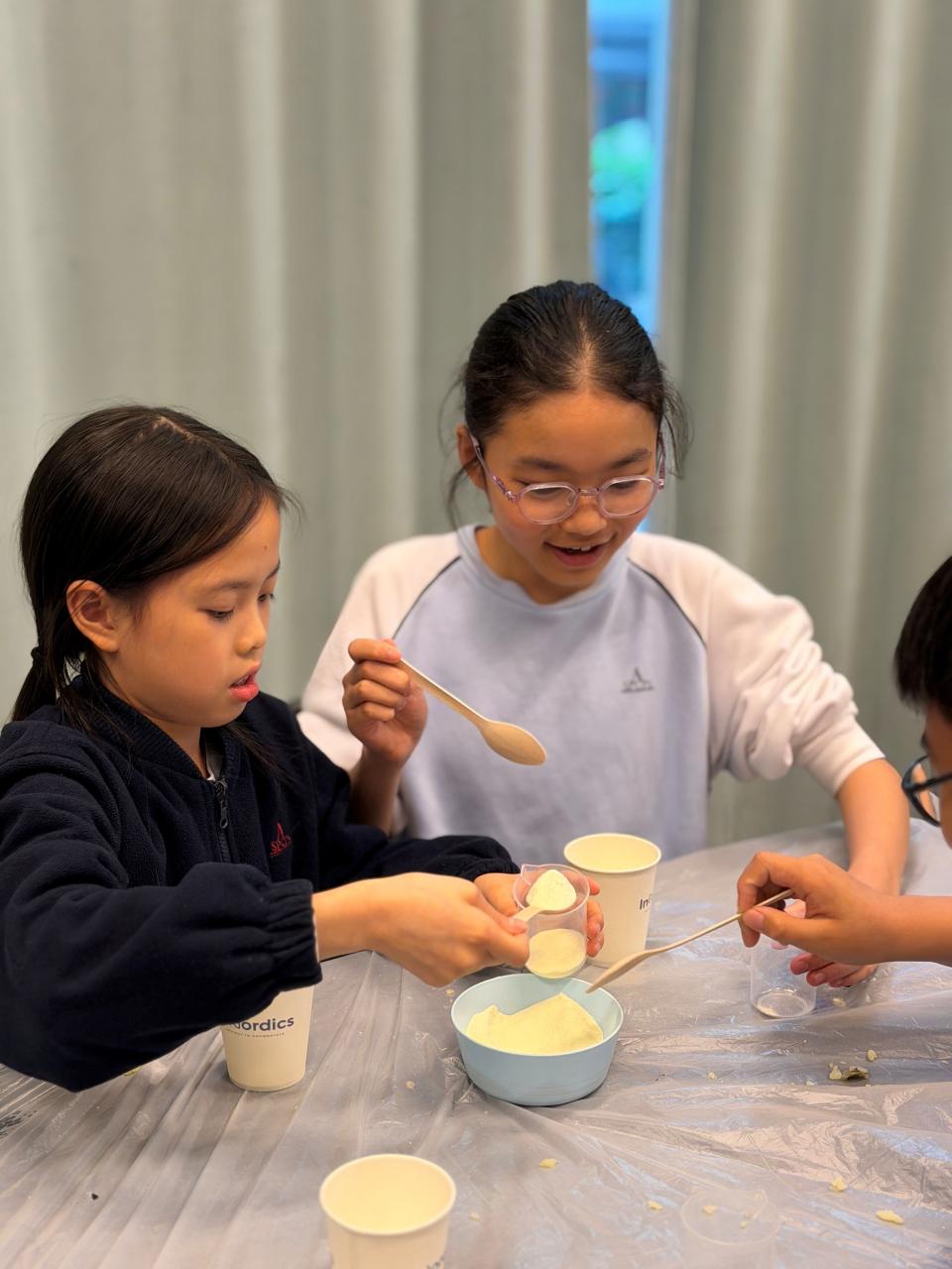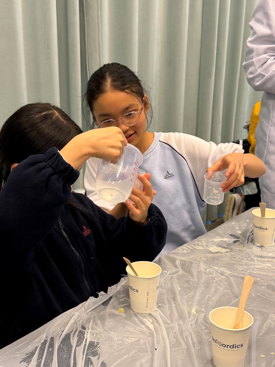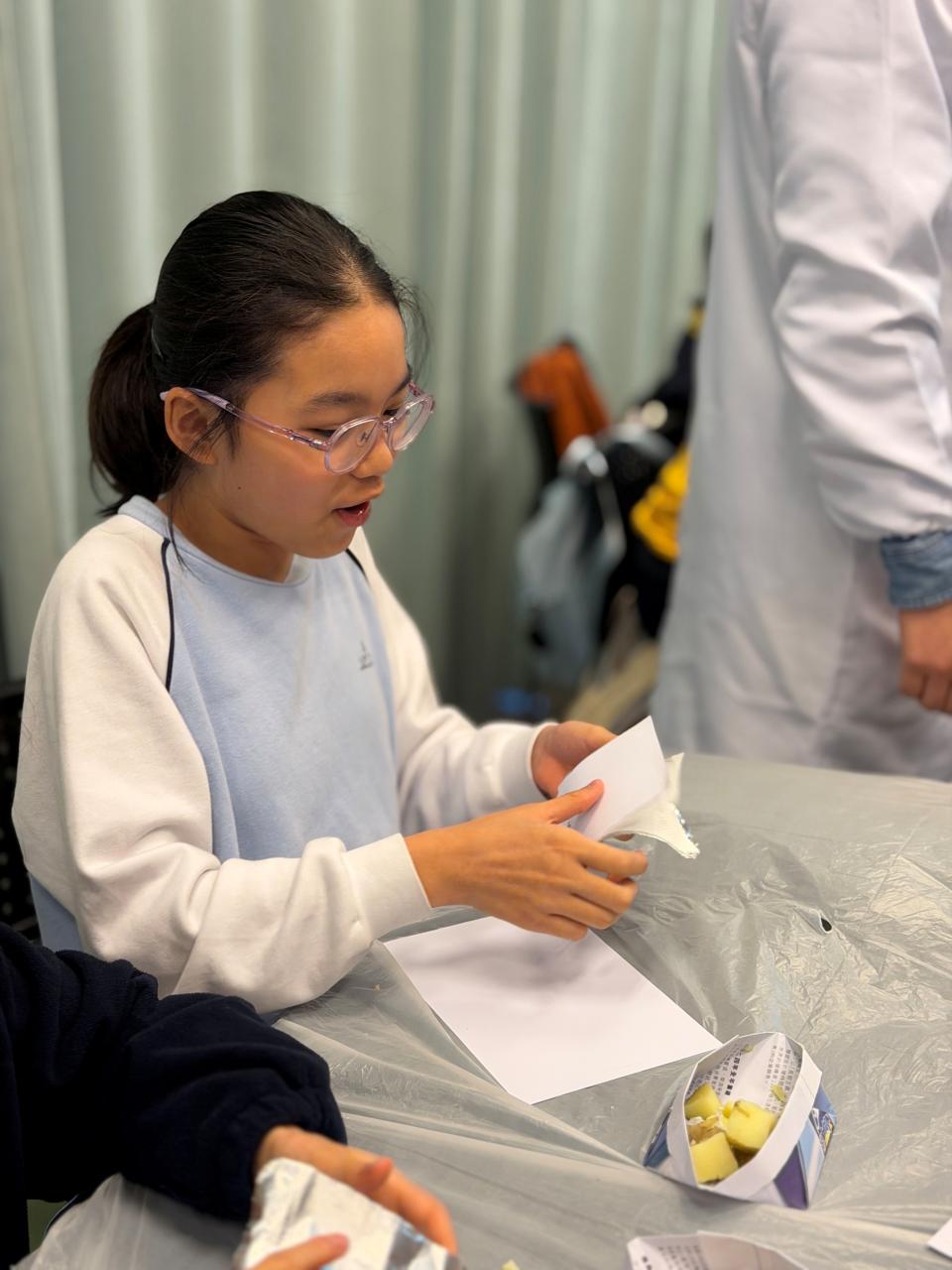 學生參加了STEM培訓工作坊。工作坊介紹了香港、芬蘭及其他北歐國家的環保概念,讓學生認識如何處理及減少廚餘。學生被分成不同小組進行匯報,向參與者分享如何在校內以3R(Reduce、Reuse、Recycle)原則推廣減少食物浪費的理念。又以芬蘭STEM教育模式,指導學生利用過期食品——薯仔和牛奶進行科學實驗。