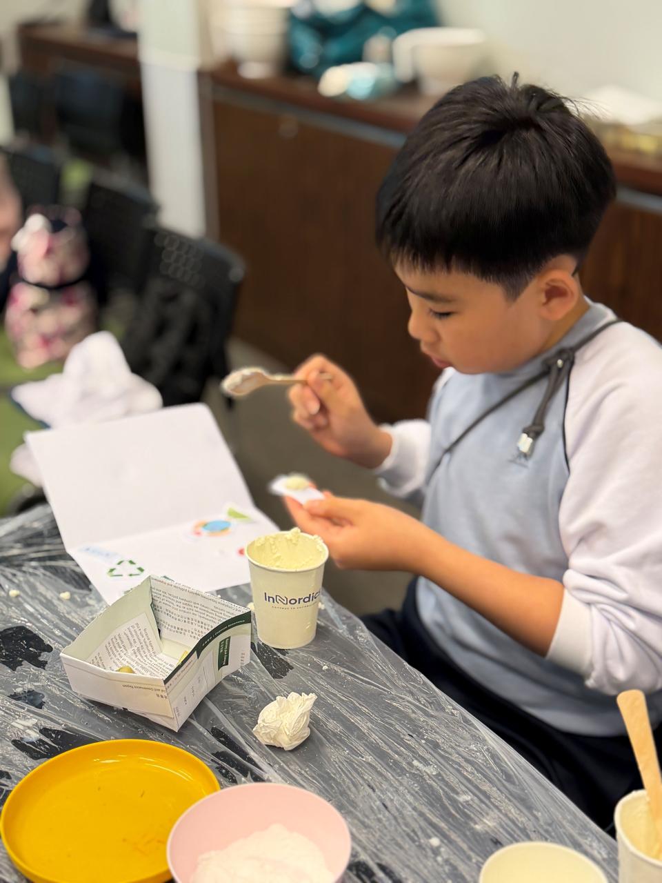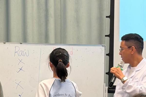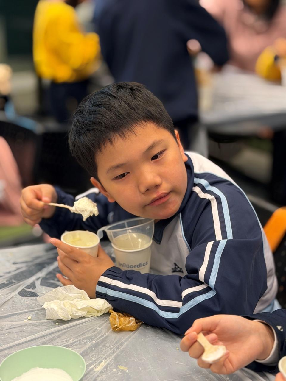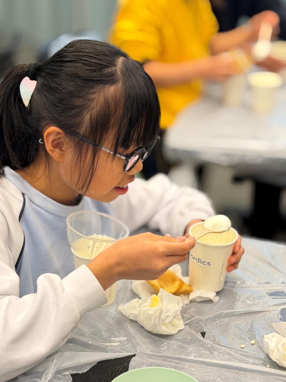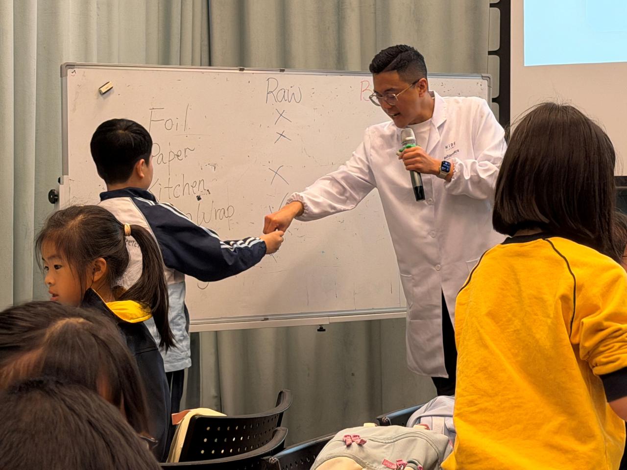 學生參加了STEM培訓工作坊。工作坊介紹了香港、芬蘭及其他北歐國家的環保概念,讓學生認識如何處理及減少廚餘。學生被分成不同小組進行匯報,向參與者分享如何在校內以3R(Reduce、Reuse、Recycle)原則推廣減少食物浪費的理念。又以芬蘭STEM教育模式,指導學生利用過期食品——薯仔和牛奶進行科學實驗。