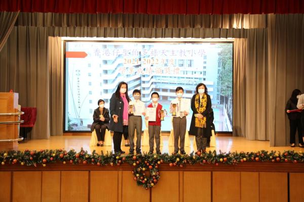 頒奬禮後,大會邀請了6D郭悅銘同學作「傑出學生」分享,更邀得其家長——郭志恩先生分享培育子女的心得。繼而是由參加了「2021粵港大灣區姊妹學校中華經典美文誦讀比賽」的同學演出。