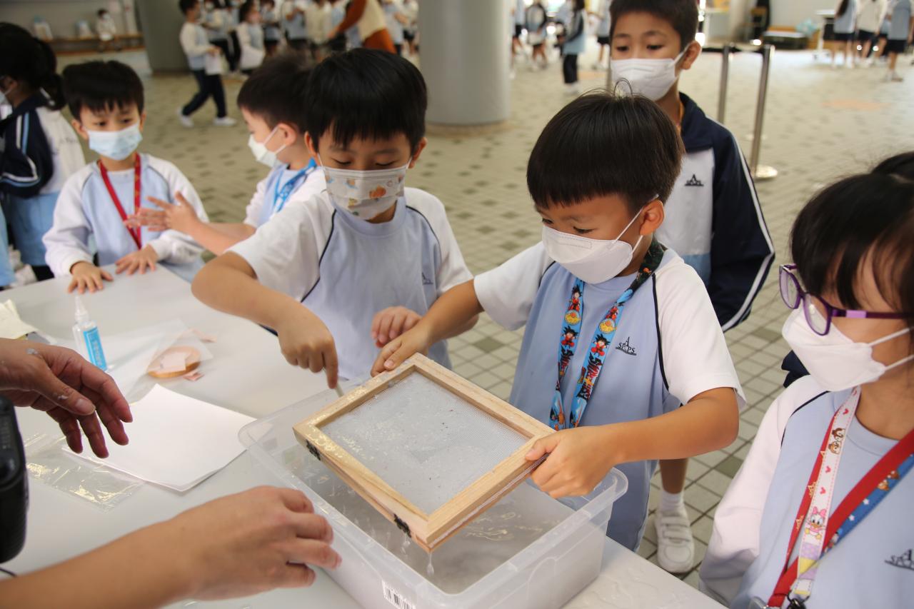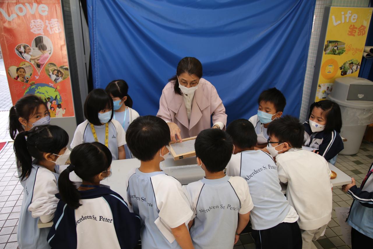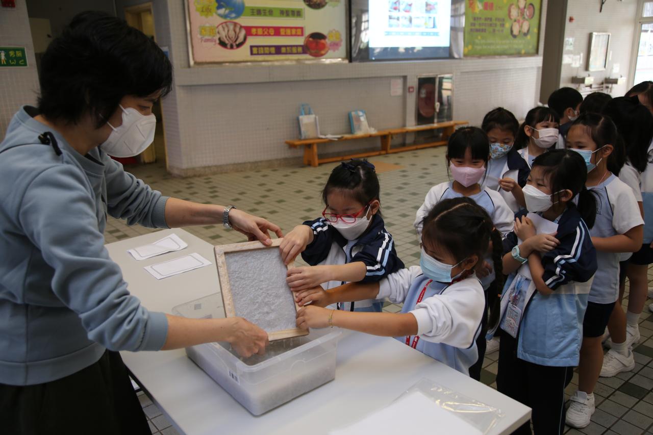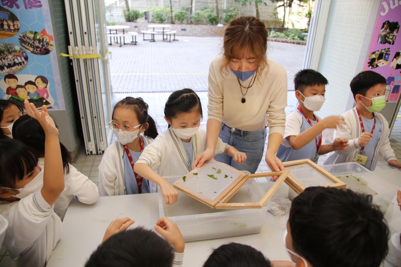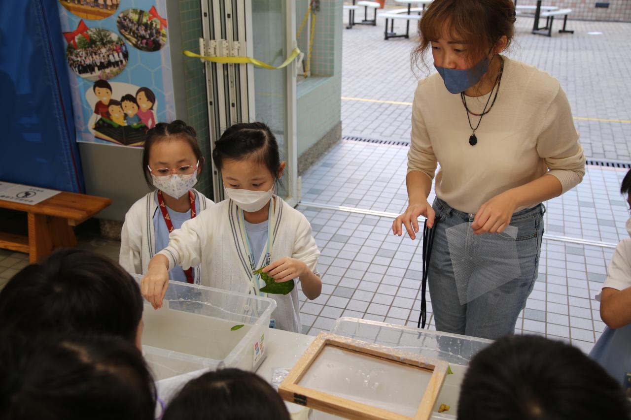本校於2022年11月9日(星期三)為小一及小二學生安排再生紙製作活動。活動結合環保、藝術及文化三大元素,讓學生透過製作再生紙,認識南區地方文化及環保概念。學生利用二維碼閱讀學習資料、並使用數碼工具紀錄學習成果,提升數碼學習能力。