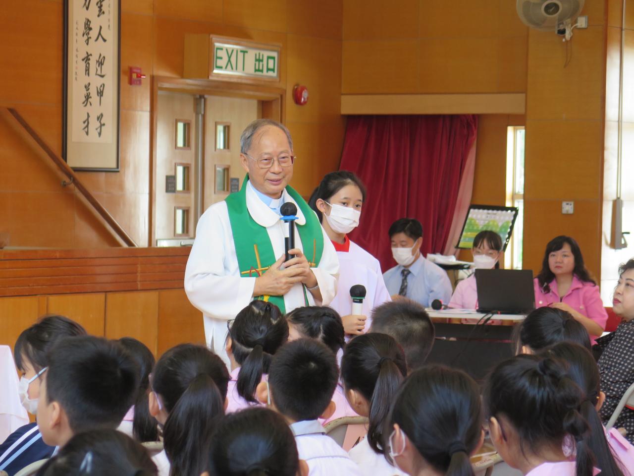 本校分別於07/09/2023(四)舉行了小一至小三開學祈禱禮及於12/09/2023(二)舉行了小四至小六開學感恩祭,均由校監伍國寶神父主禮。校監在禮儀講道中,以長頸鹿的特徵勉勵學生要有高瞻遠矚的世界觀,平和溫純的品性,為建設美好的將來而努力學習。