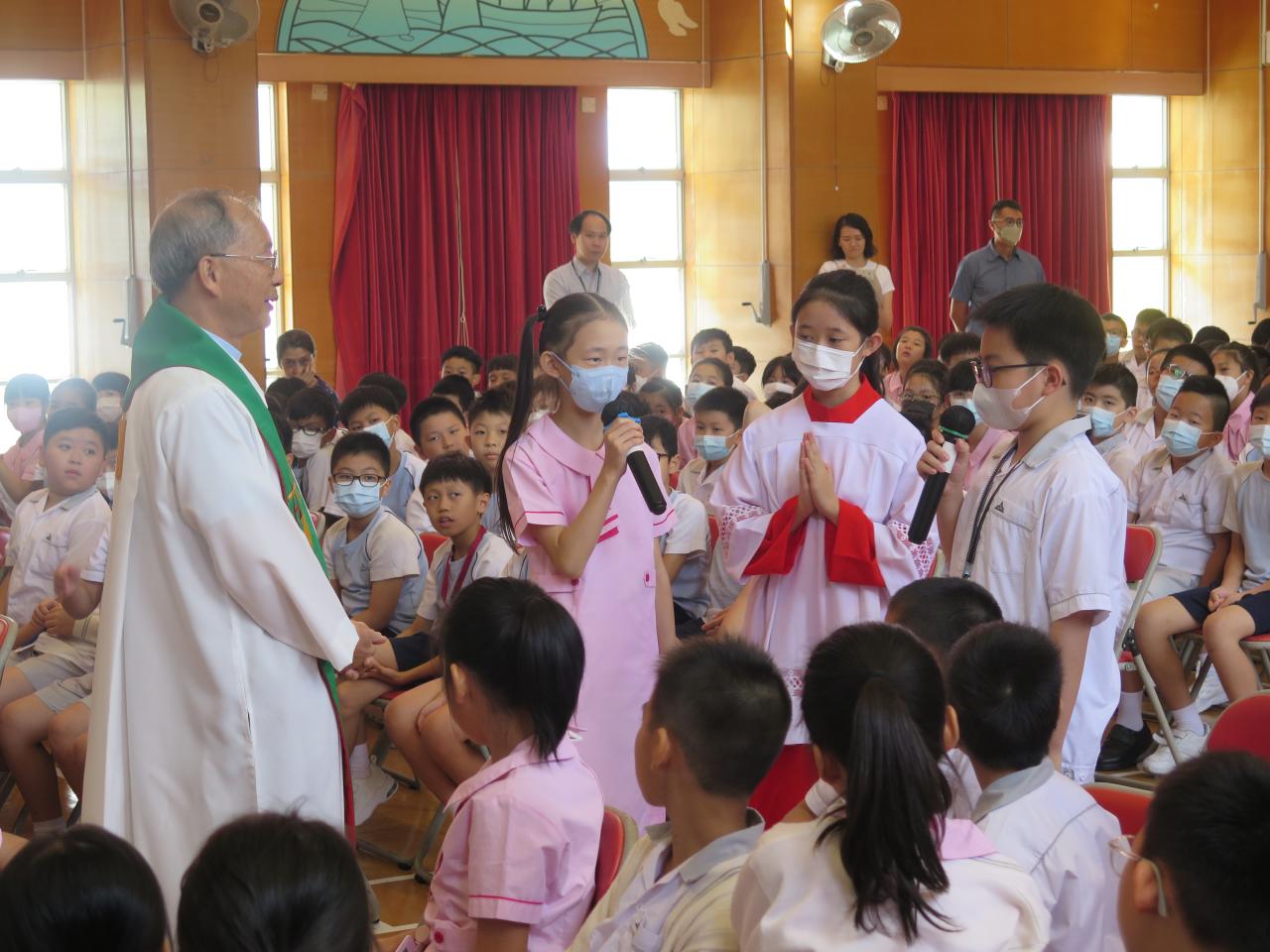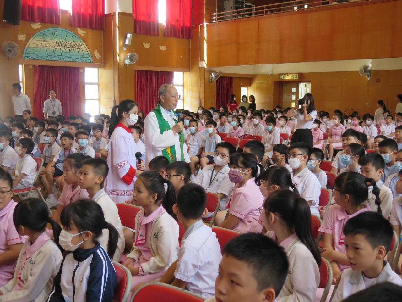 本校分別於07/09/2023(四)舉行了小一至小三開學祈禱禮及於12/09/2023(二)舉行了小四至小六開學感恩祭,均由校監伍國寶神父主禮。校監在禮儀講道中,以長頸鹿的特徵勉勵學生要有高瞻遠矚的世界觀,平和溫純的品性,為建設美好的將來而努力學習。