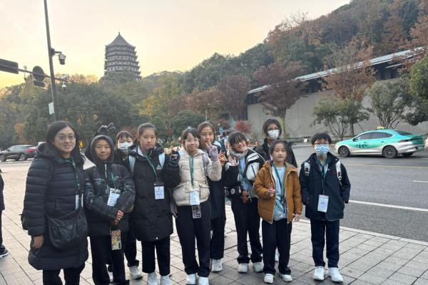 小六杭州姊妹學校交流四天團在侯校長的帶領下,浩浩蕩蕩從香港國際機場出發。同學們的心情都十分激動,期待在四天的旅程中收穫豐盛的學習成果。 到達杭州的第一天,六年級的學生欣賞六和塔外觀,晚飯後,大家抱着期待的心情欣賞著名的「宋城千古情」,透過雜技和歌舞表演學習杭州的歷史文化。