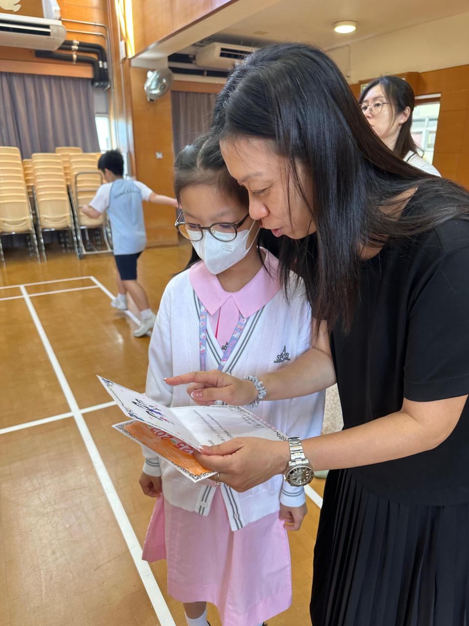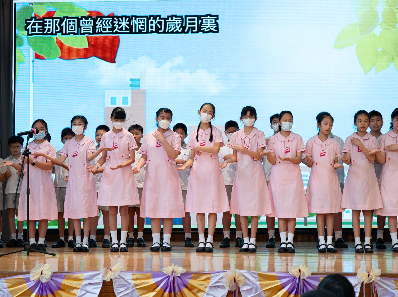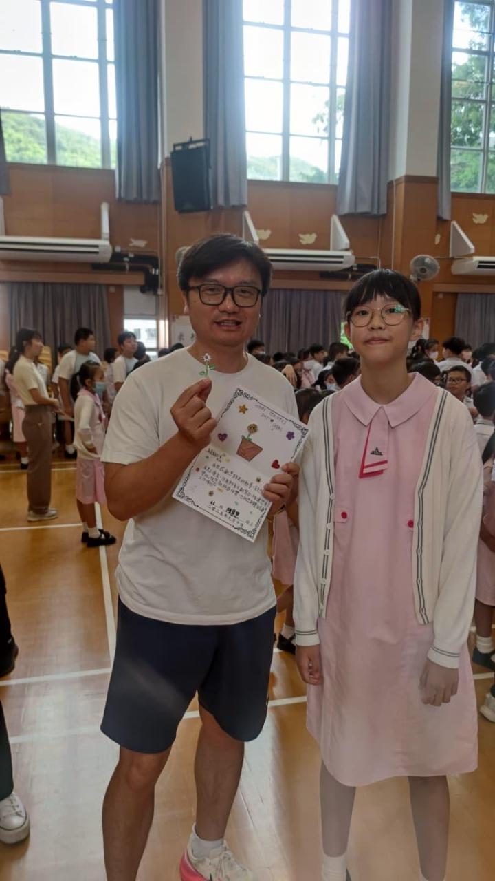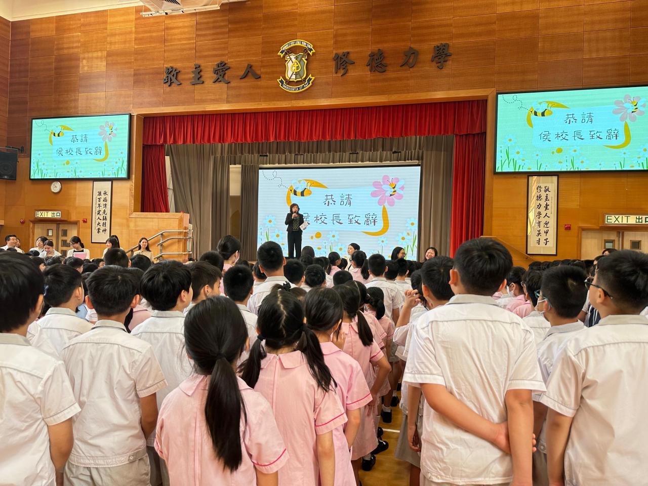 10/09/2025(三)在敬師日活動中,家長教師會主席葉佩恩女士、副主席陳子敏女士,5A 陳孜濬同學與陳冠明同學共同主持是此次活動。 活動內容豐富,首先播放了孩子表達對老師感恩之情的片段,緊接著 6A 班同學獻上唱歌表演。其後,同學向校長、副校長及全體老師致送敬師卡和水果,以表達深深的感激之意。 隨後,校長勉勵同學銘記感恩之心,同時代表學校老師向家長和同學的心意致以謝意。校長強調要實踐校訓「敬主愛人 修德力學」,來報答老師的教導。