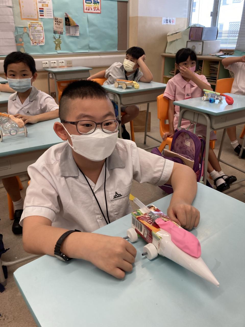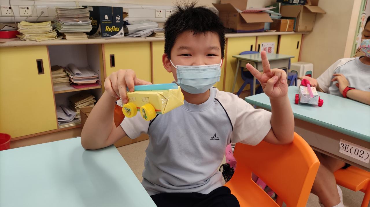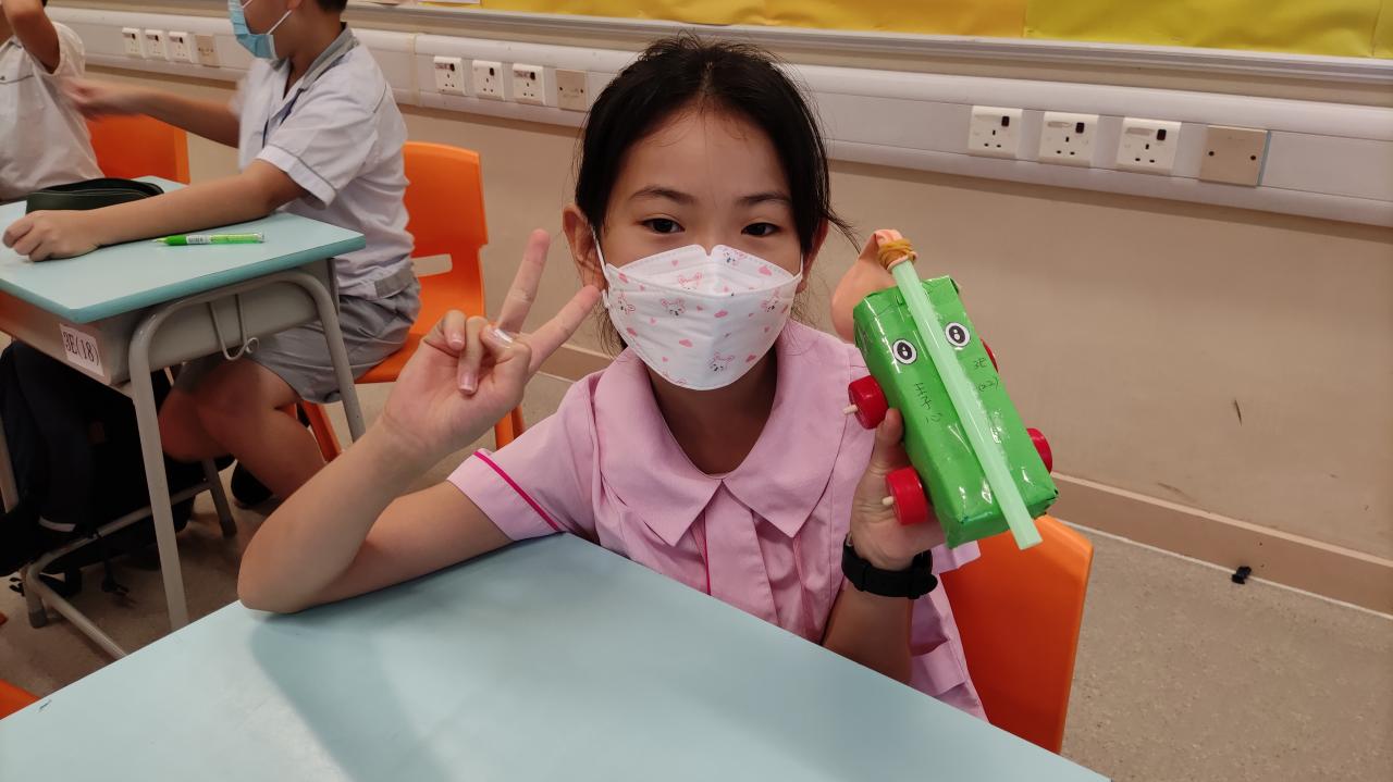 小三學生於課後利用環保物料製作親子「環保動力車」,讓學生認識環保動力車前進時的科學原理和結構,另外,也認識到可再生能源,增加學生的環保意識。