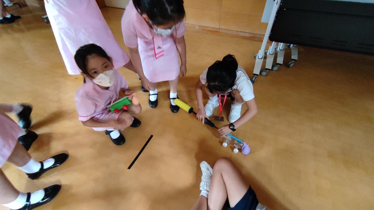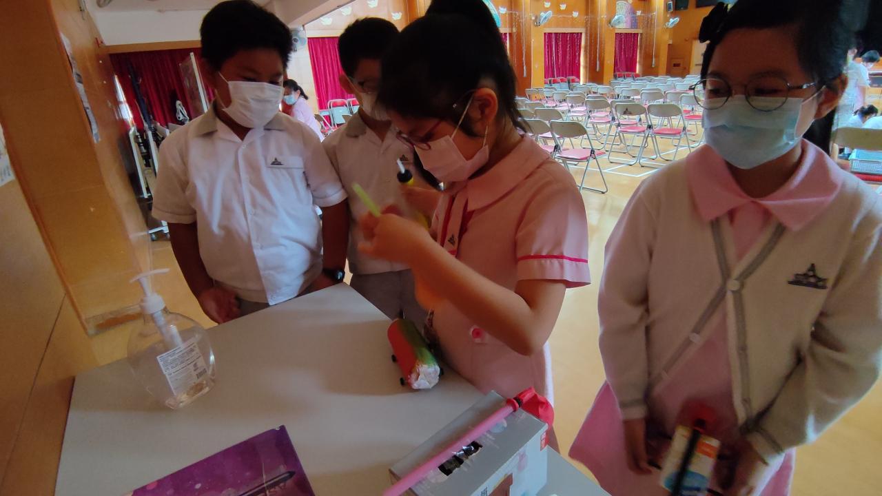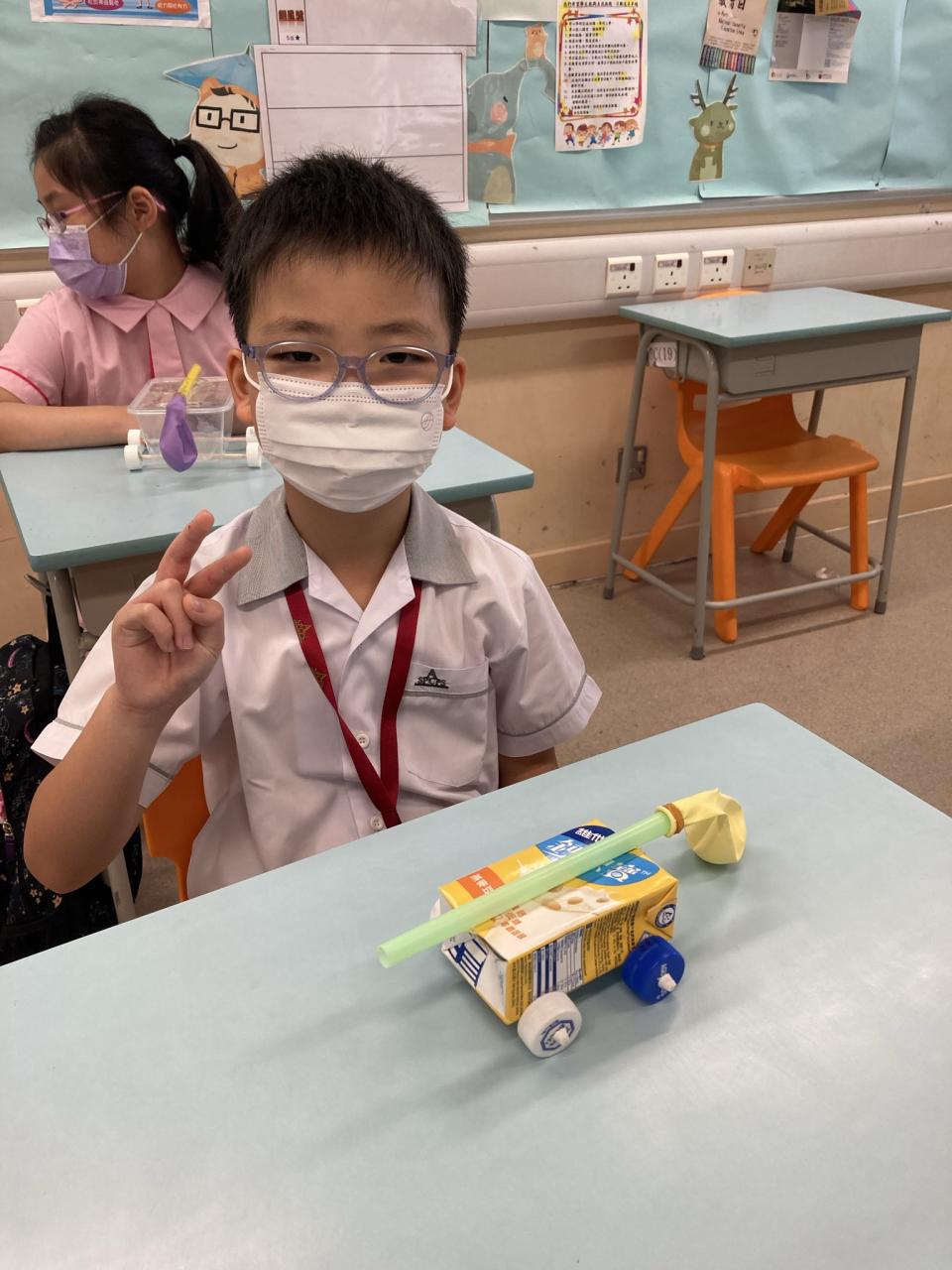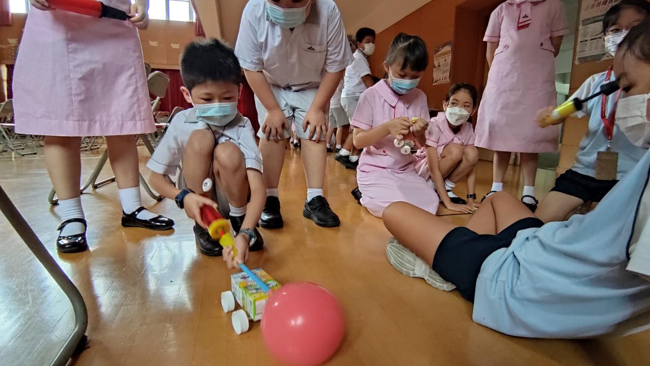 小三學生於課後利用環保物料製作親子「環保動力車」,讓學生認識環保動力車前進時的科學原理和結構,另外,也認識到可再生能源,增加學生的環保意識。