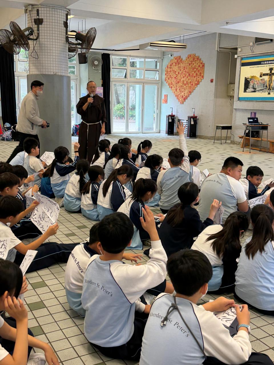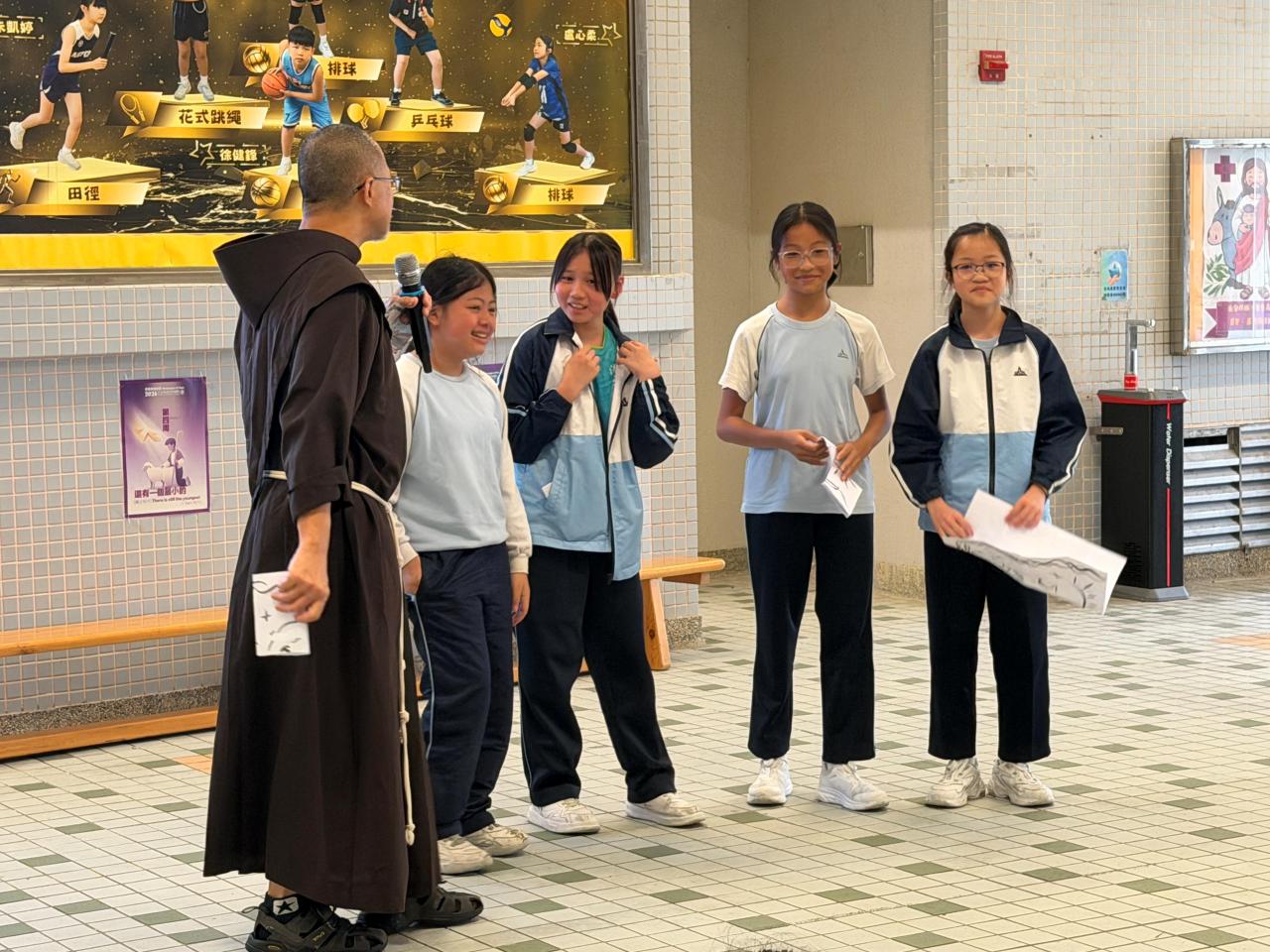 本校參加了賽馬會節能減電學校計劃,於27/03/2026(五)邀請了天主教方濟會的伍維烈修士為我們主持「方濟各遇上聖方濟:唱歌學通諭」講座,學生透過歌唱LAUDATO SI的粵語版,輕鬆學習方濟造物讚及方濟各通諭的重點。