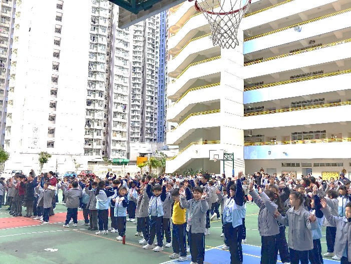 早操 | 早會前,體育科老師會帶領學生在操場上進行早操。 |