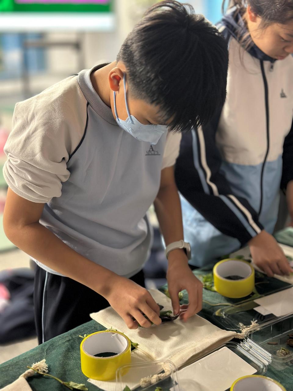 同學們在工作坊中製作了擴香石、布袋等日後用於學界本地農墟上出售的商品。其中,以香草葉汁為布袋上色的製作過程,兼具園藝治療的效果,有助於提升學生對精神健康的關注。