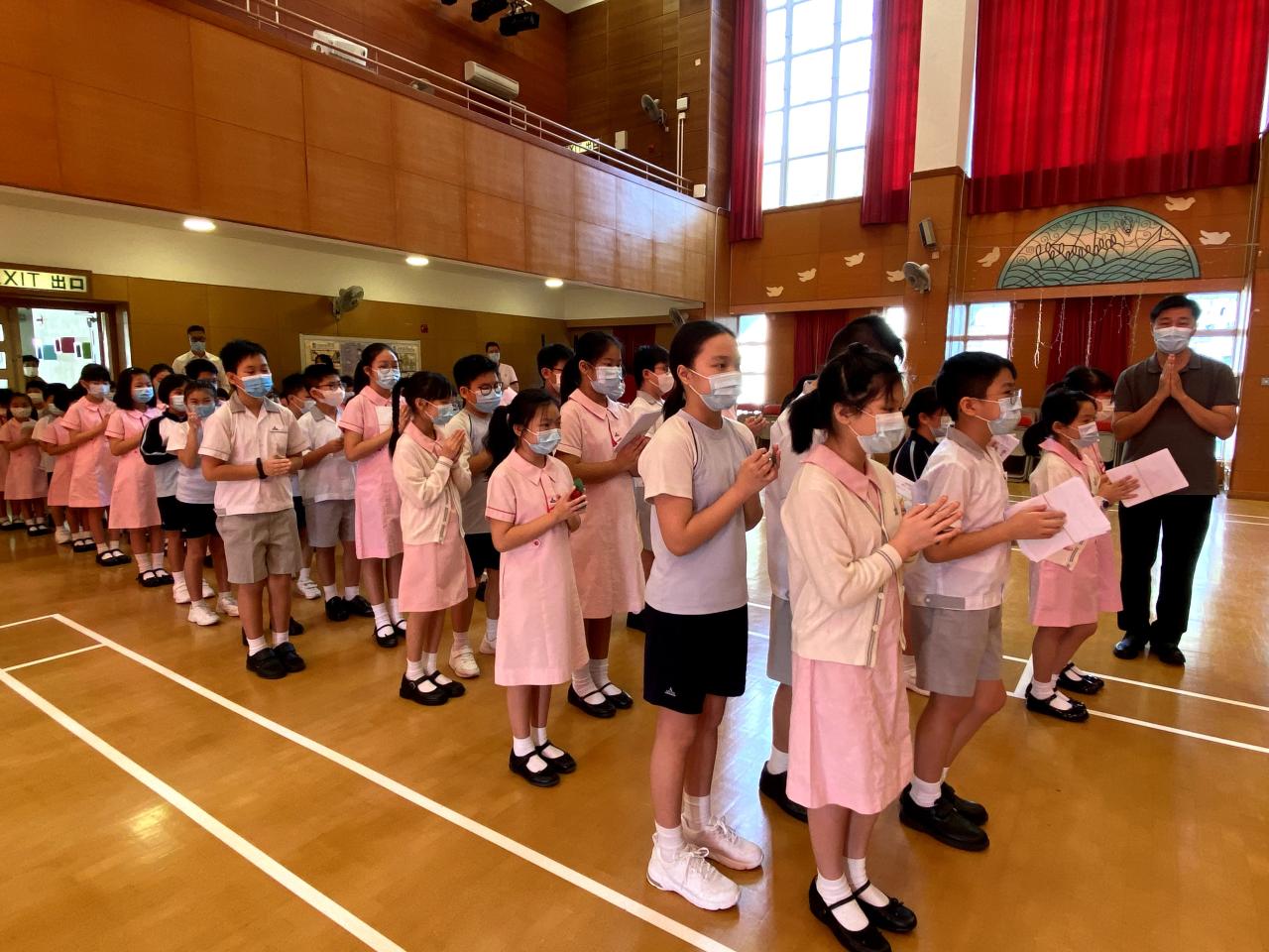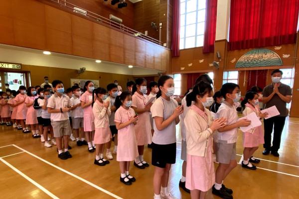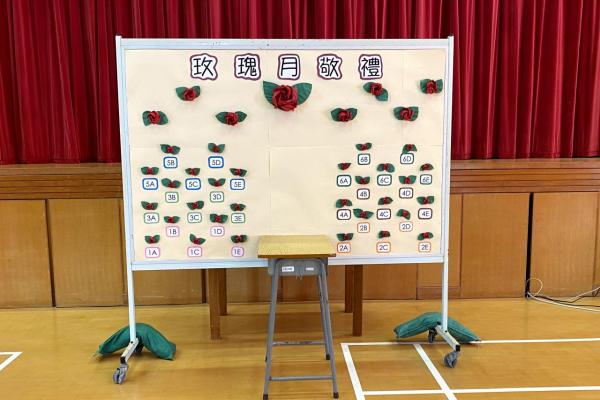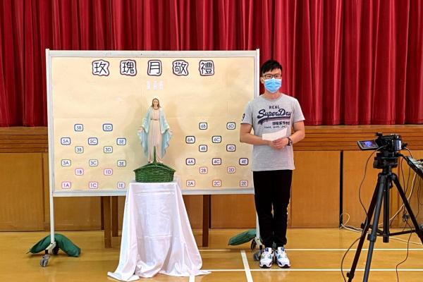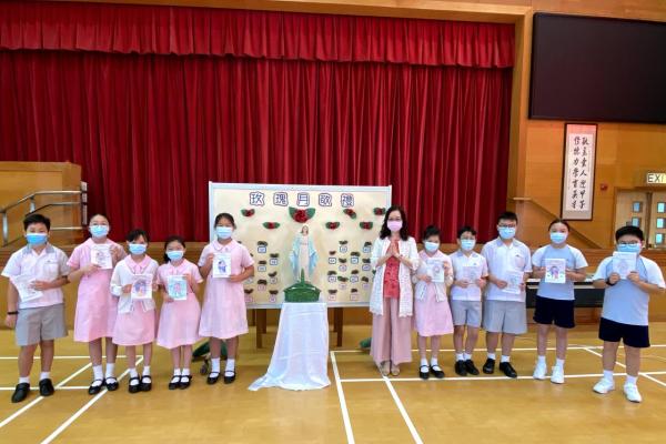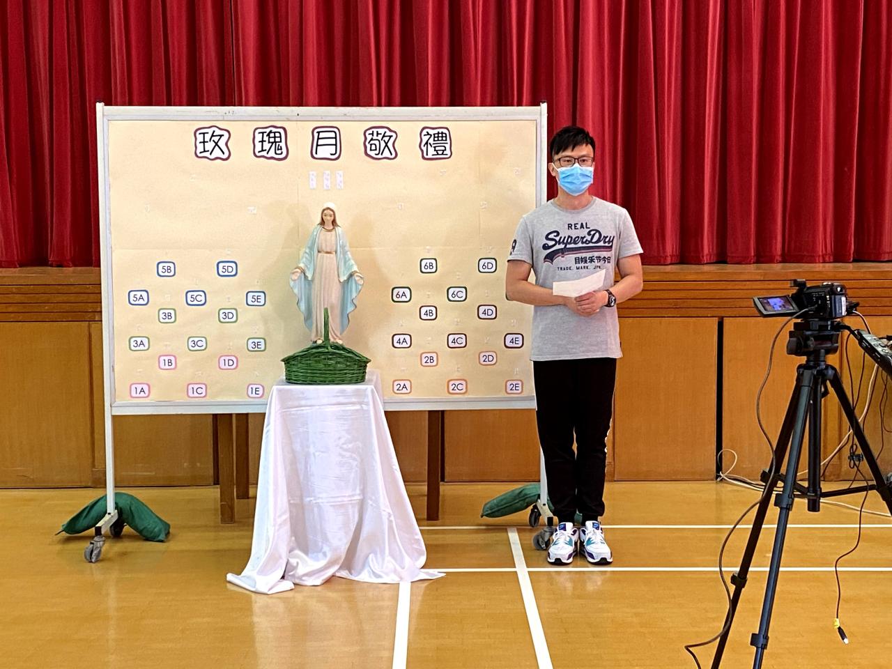 今天在學校禮堂進行了玫瑰月早會敬禮,校長、老師及同學們虔誠地向聖母瑪利亞獻花。