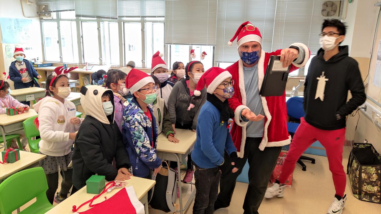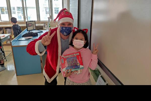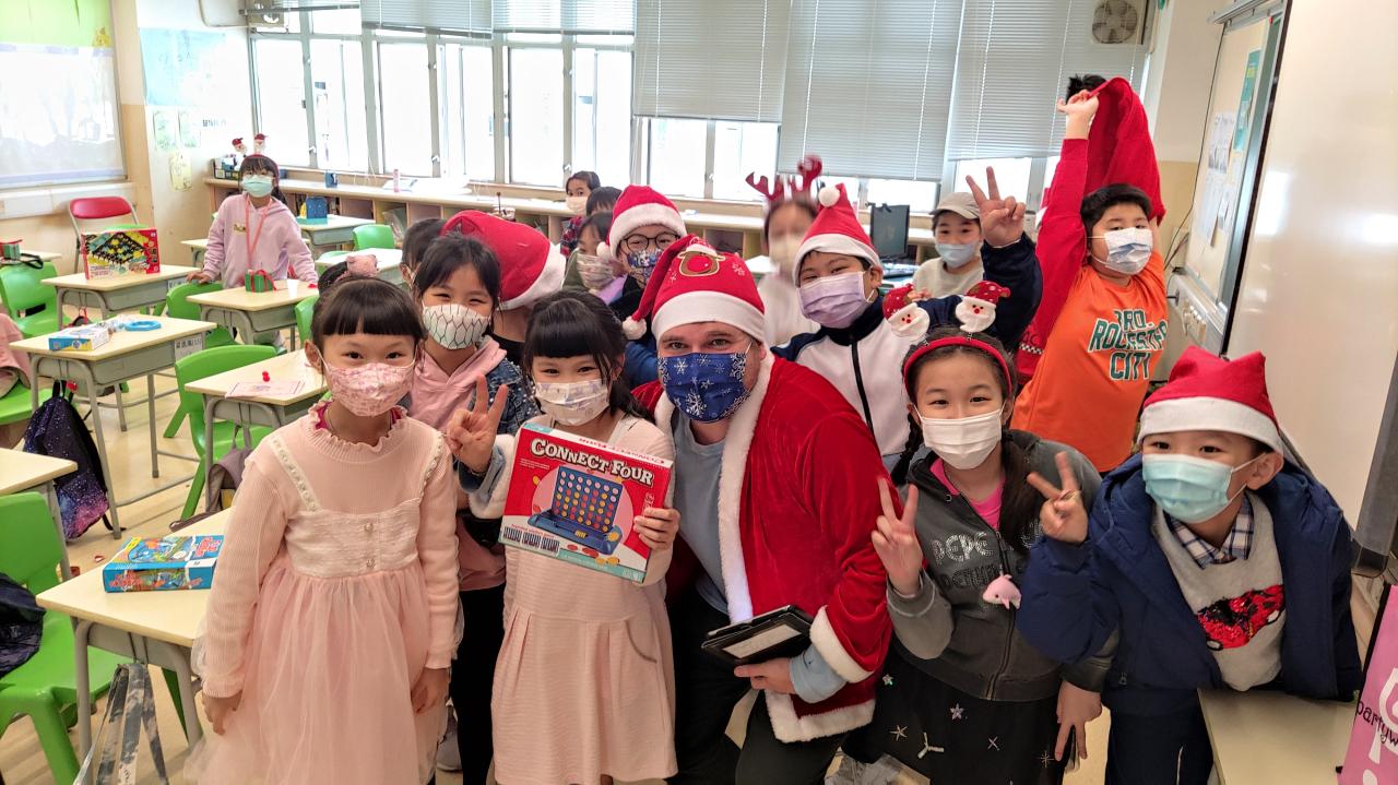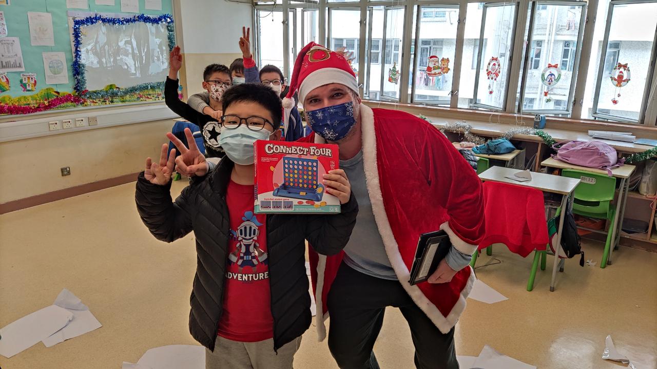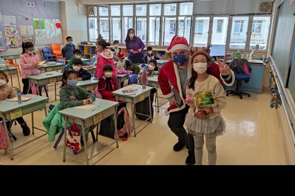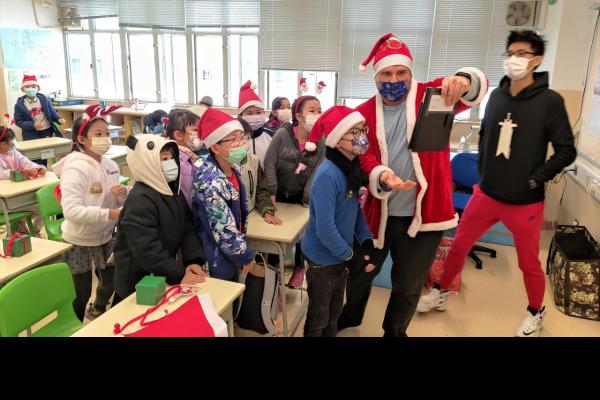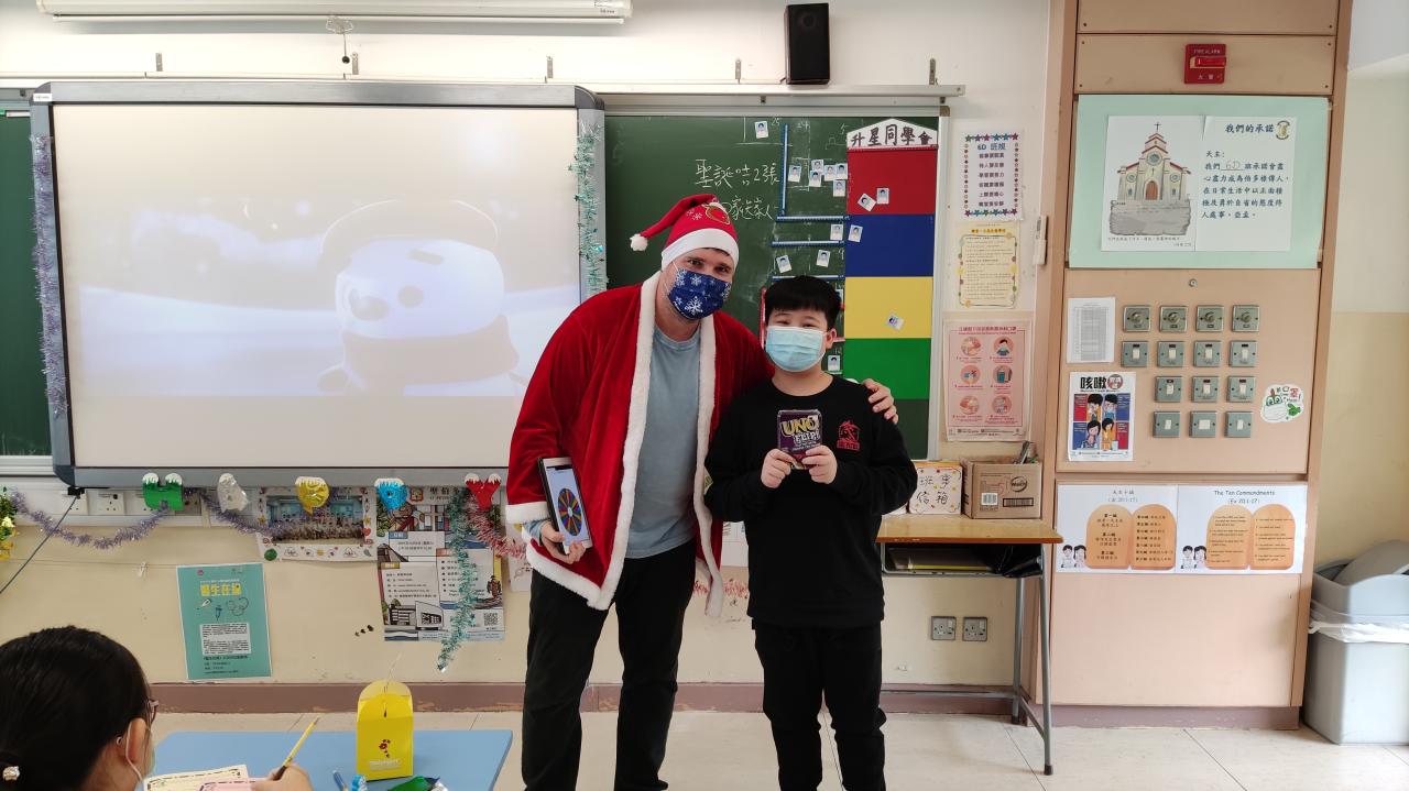 Mr. Cam(NET teacher)更化身聖誕老人,到各班玩遊戲和抽獎,與同學一同歡度聖誕。