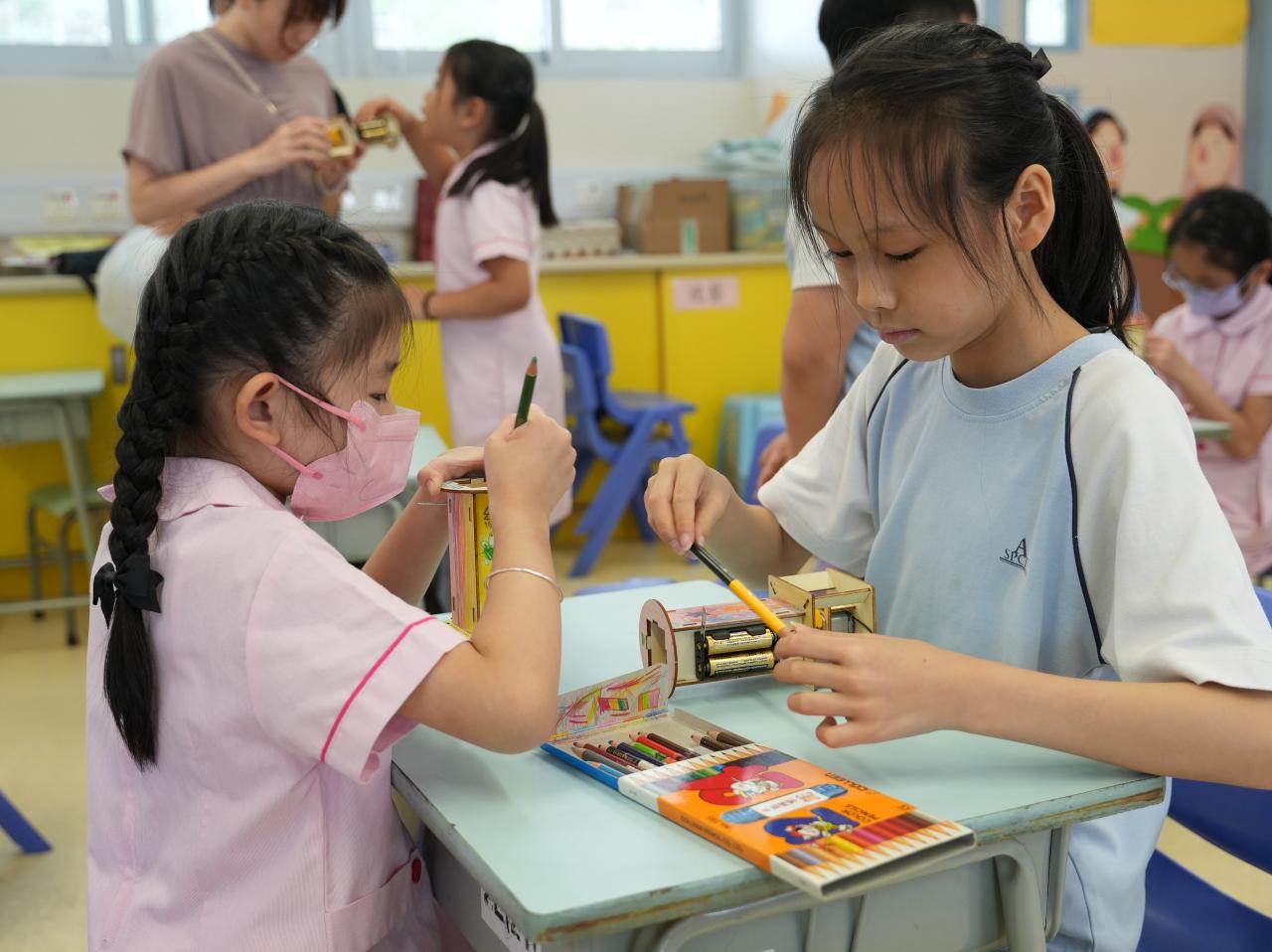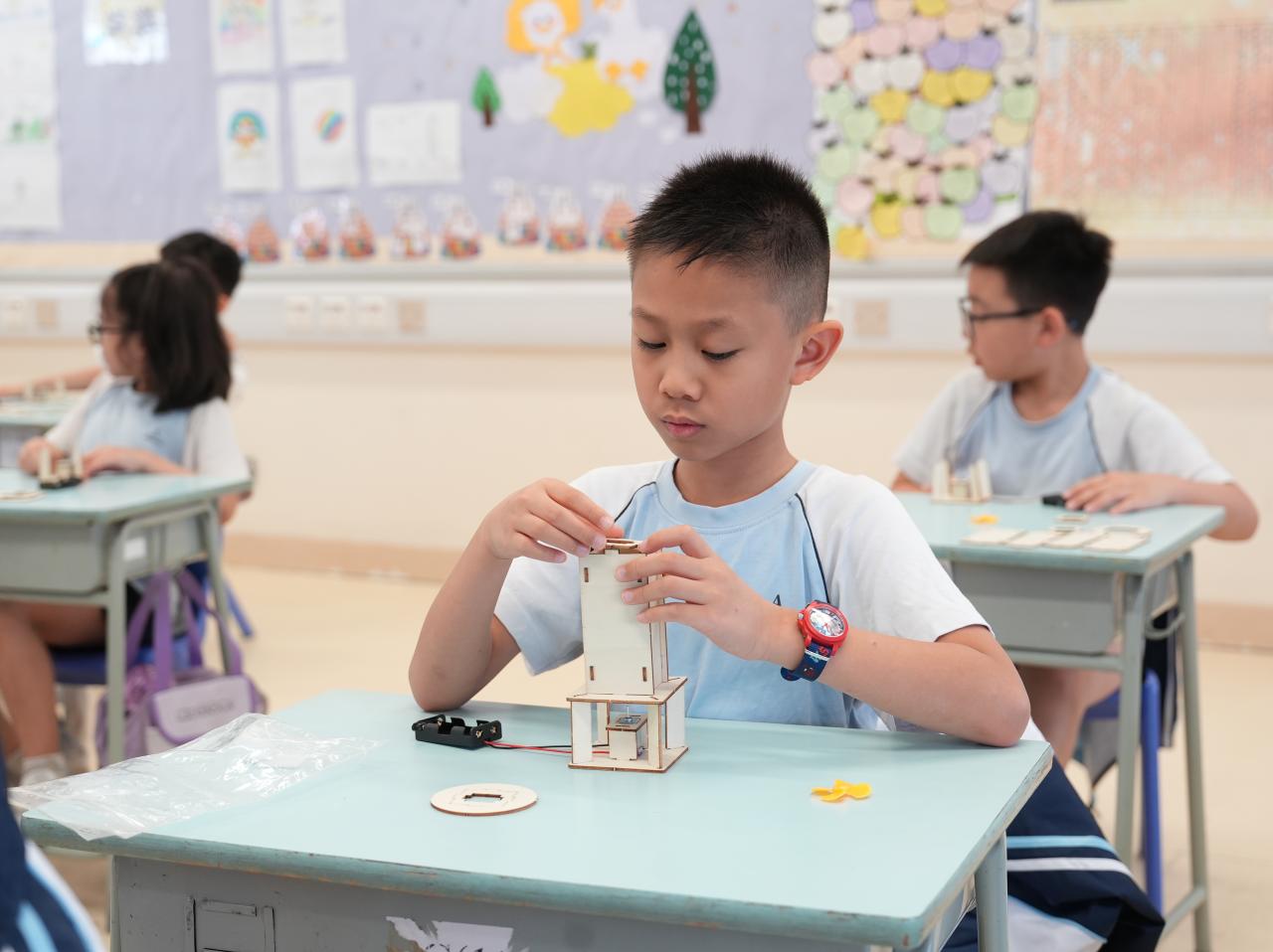 為了加強學生對節能減碳、創新科技及機電安全的認識,小一和小二學生在18/06/2025(三)通過「機電青少年大使」校園計劃進行了有趣的STEAM探究活動。他們分別製作了「小小風力車」和「懸浮球」。此活動不但能提升學生對STEAM教育的興趣,也能加深學生對機電行業發展的了解。