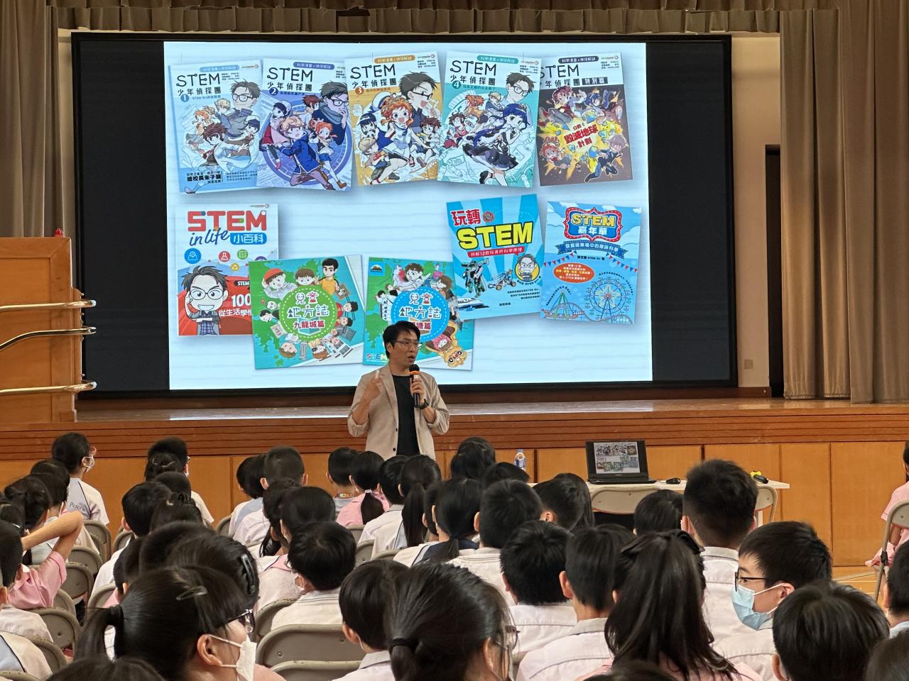 本校於30-06-2023邀請鄧文瀚先生(STEM sir)到校為P.4-P.6學生分享閱讀啟發創意的重要,透過閱讀科學類圖書,可刺激小朋友思維方法,引發他們追求卓越表現。