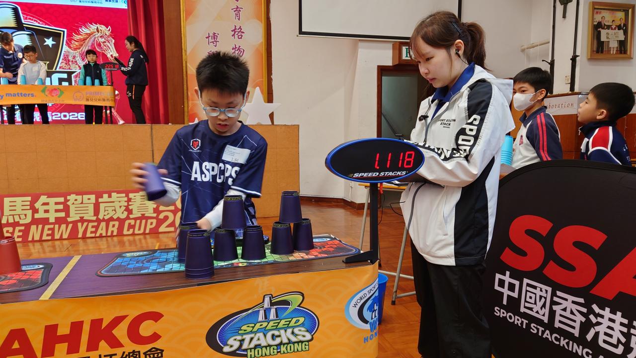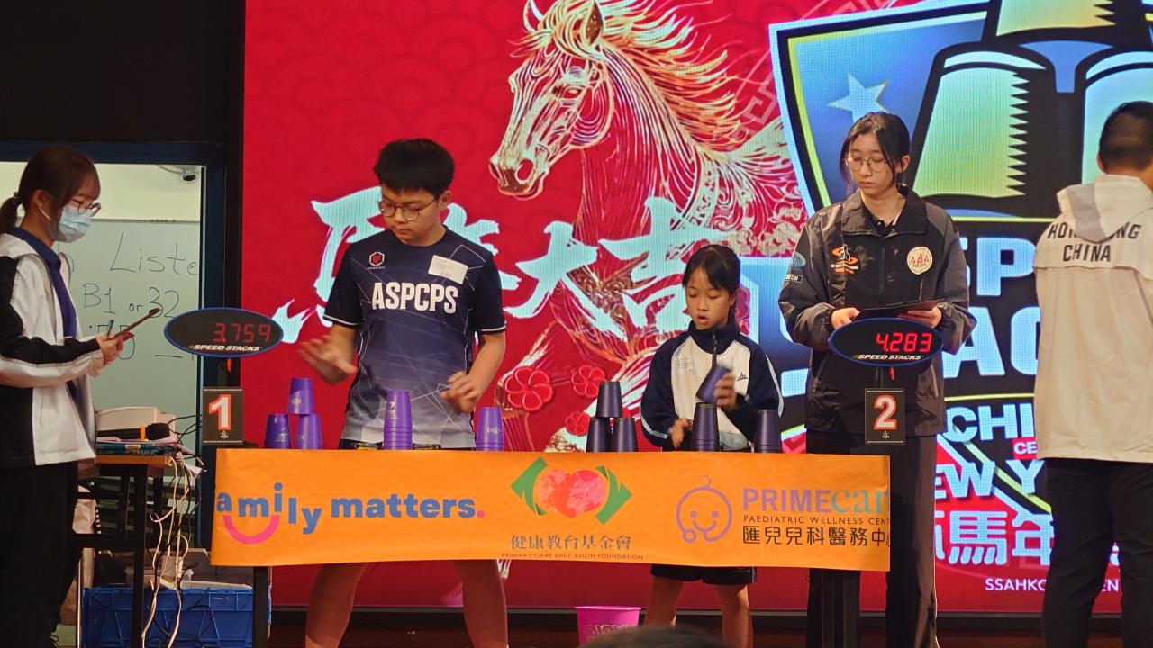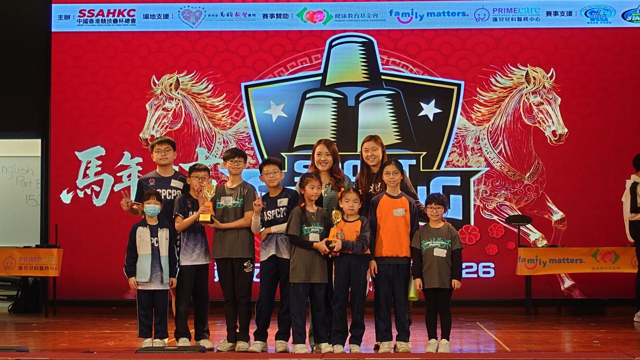 本校的競技疊杯隊隊員於2月8日參加由中國香港競技疊杯總會主辦的「競技疊杯馬年賀歲賽2026」。今次比賽共有8位隊員參加,出戰個人3-3-3計時賽、個人3-6-3計時賽、個人Cycle計時賽及團體3-6-3接力對抗賽。各參賽隊員在比賽中都全力以赴,當中3B班陳洛瑤、4D班劉樂培、4D班李潔鏇、6A班尹超賢、6C班張智竣及6E班陳駿昇於各項比賽中獲得理想的成績!期望各位隊員於其他競技疊杯比賽中繼續努力,為校爭光!