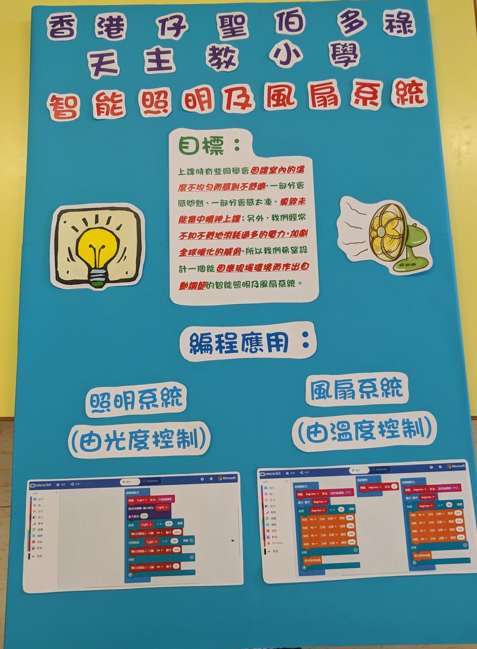 比賽前,同學們用了近三個月時間作準備,以製作由Micro:bit控制的智能照明及風扇系統。該系統能自動識別課室內的光暗及溫度以調節LED燈泡的發光程度及風扇的轉速,以達致節能的效果。