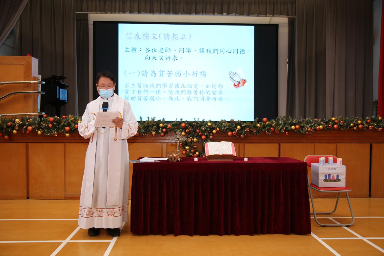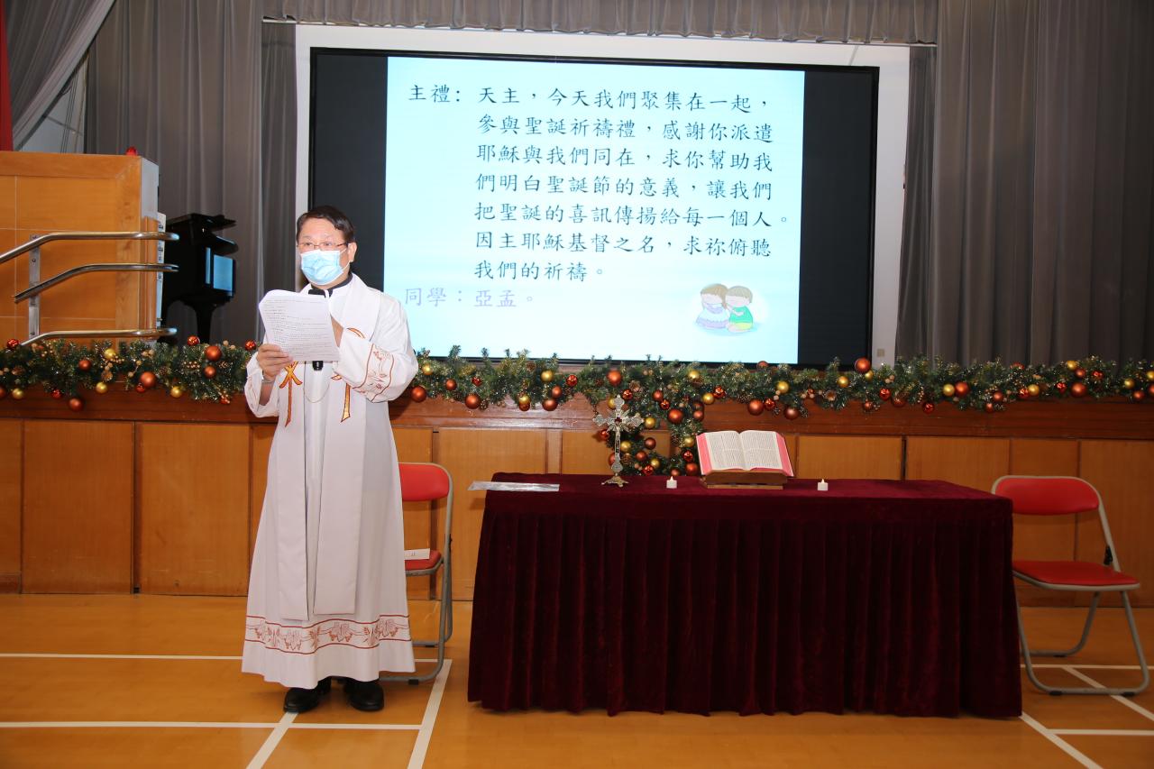 本校於2021年12月22日(三)舉行了聖誕祈禱會,由聖伯多祿堂主任司鐸梅杰神父主持。在祈禱會中,同學們專心聆聽路加福音(2:8-14)中有關耶穌誕生在白冷的經文,及梅神父的分享。梅神父在講道中提醒同學們要明白聖誕節的真正意義:耶穌降生人間是要與我們同在,並帶給我們喜樂與平安。因此,慶祝聖誕節不應只是吃聖誕大餐或購物,而是藉聖誕佳節,把聖誕的喜訊、把愛帶給每一個人。