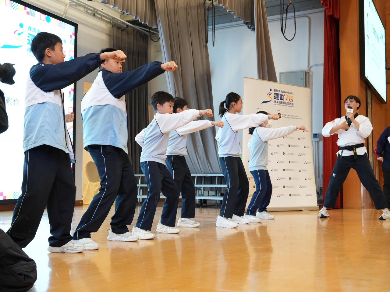 配合本年度的關注事項-「專才教育」,本校獲「賽馬會運動+精英運動員社區計劃」協助,榮幸能邀請香港跆拳道代表呂靖楠先生為四至六年級學生作分享活動,分享內容講述運動員生涯的艱苦及必須保持堅毅的精神,是次分享會作為學生生涯規劃的教育,學生亦有在活動中體驗跆拳道的活動,表現積極踴躍。
