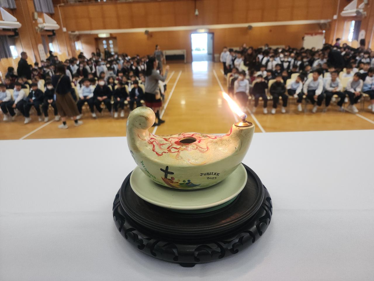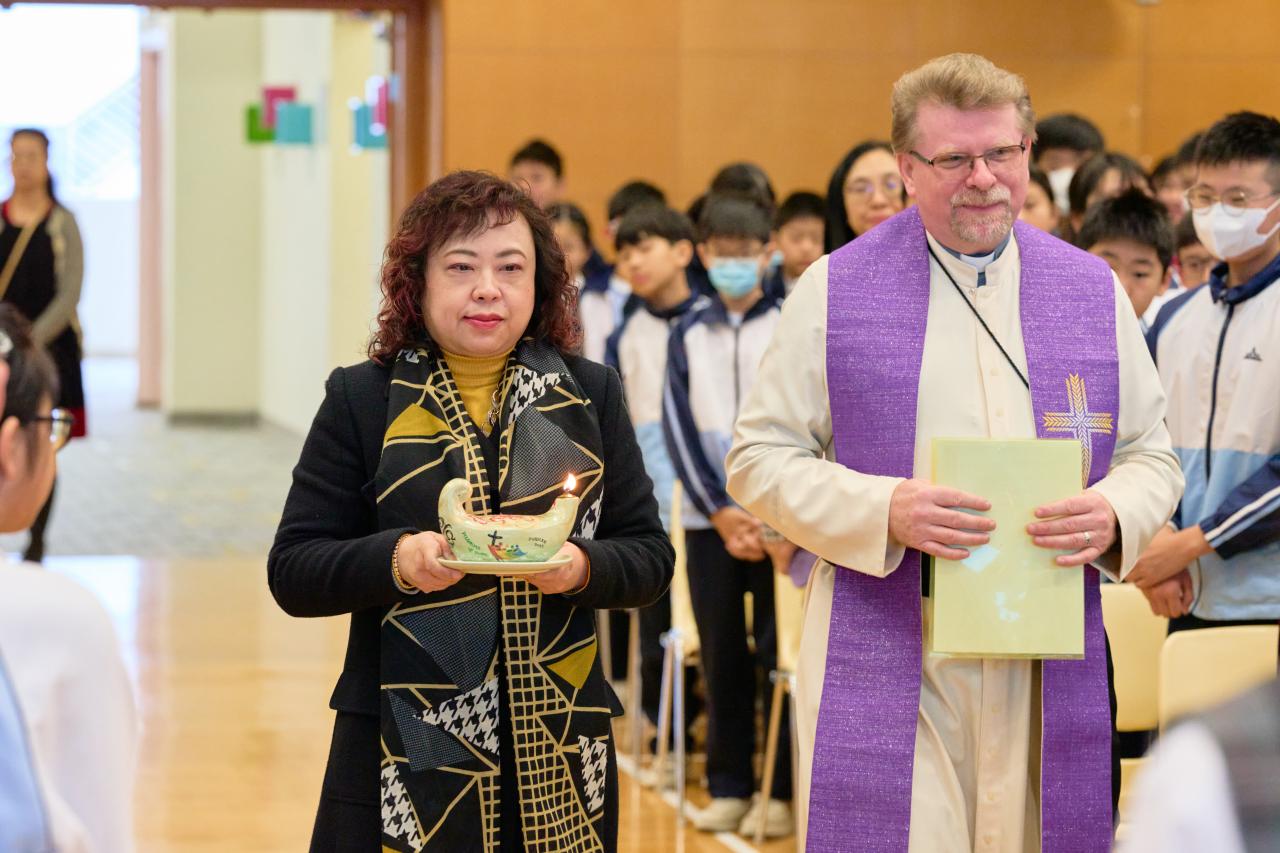 本校於18/03/2025(二)於禮堂進行迎「希望之光」油燈禮,由聖伯多祿堂主任司鐸簡立和神父主禮,禮儀開始時,侯校長於禮堂入口燃亮希望之光油燈,與簡神父一起進場,全體師生詠唱《仁愛救世天主》。 簡神父訓勉我們要時常充滿希望和愛心,全心信靠天主。油燈全天放置於禮堂內,全校學生到禮堂向天主祈禱,親近天主,藉以祈求心靈能充滿希望,並樂意成為希望的朝聖者,把希望帶給有需要的人。