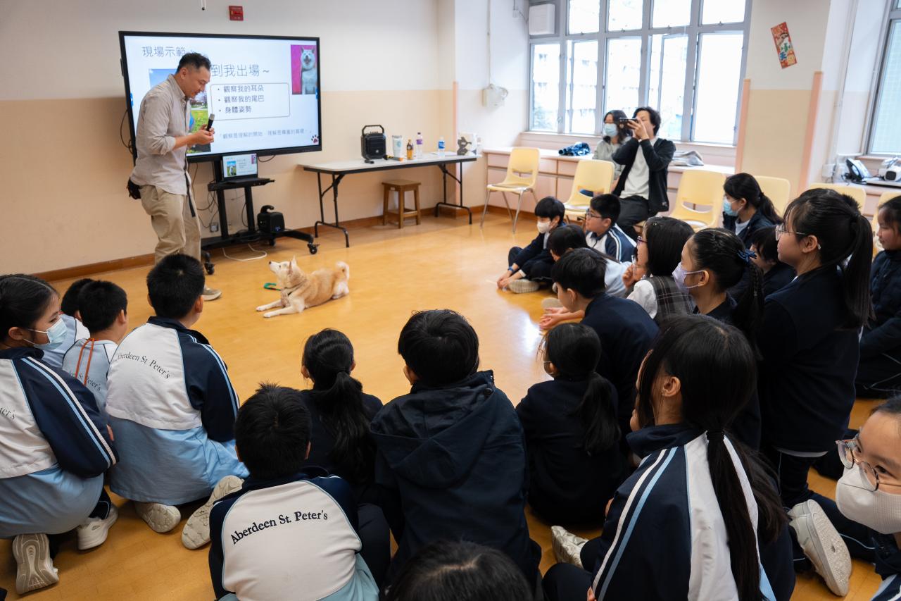 活動中,Eric 親自深入淺出地講解了馴犬師的日常工作與專業素養,並即場示範精湛的犬隻訓練技巧。學生反應熱烈,積極參與互動,近距離感受這門職業的獨特魅力。