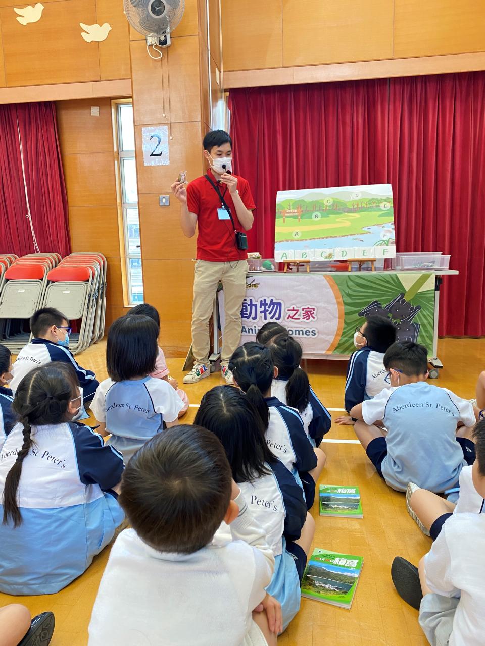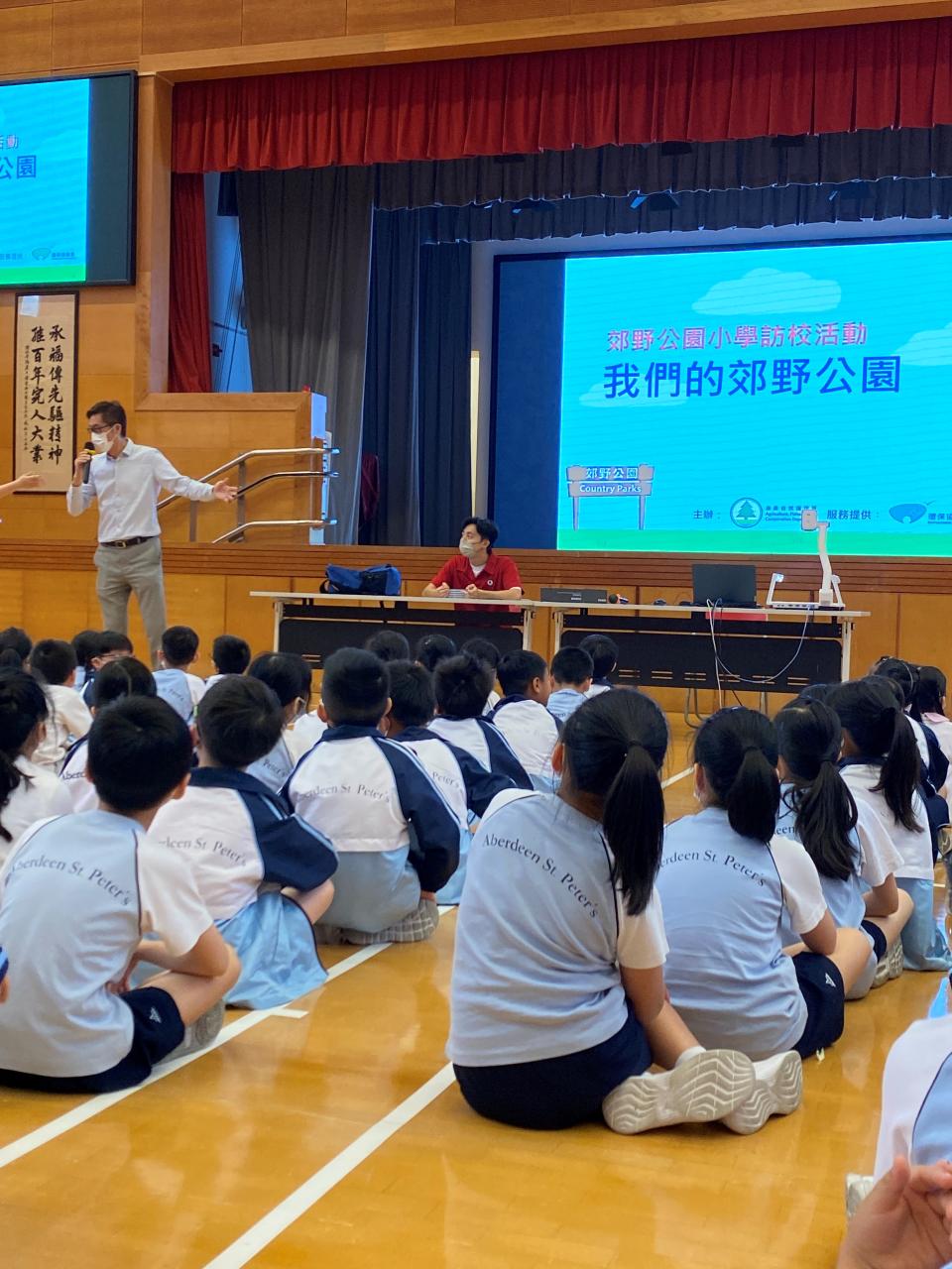 為了配合「親親大自然」這個課題,常識科特意邀請漁農自然護理署的人員來到學校為二年級的同學講解遊郊野公園的守則,並且讓同學透過五感手法深入認識了在郊野公園常見的昆蟲和植物,學習頓時變得生動有趣。