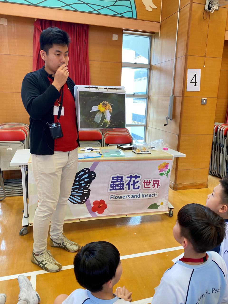 為了配合「親親大自然」這個課題,常識科特意邀請漁農自然護理署的人員來到學校為二年級的同學講解遊郊野公園的守則,並且讓同學透過五感手法深入認識了在郊野公園常見的昆蟲和植物,學習頓時變得生動有趣。