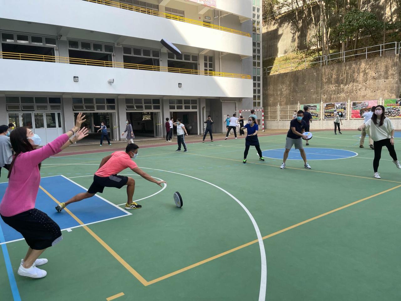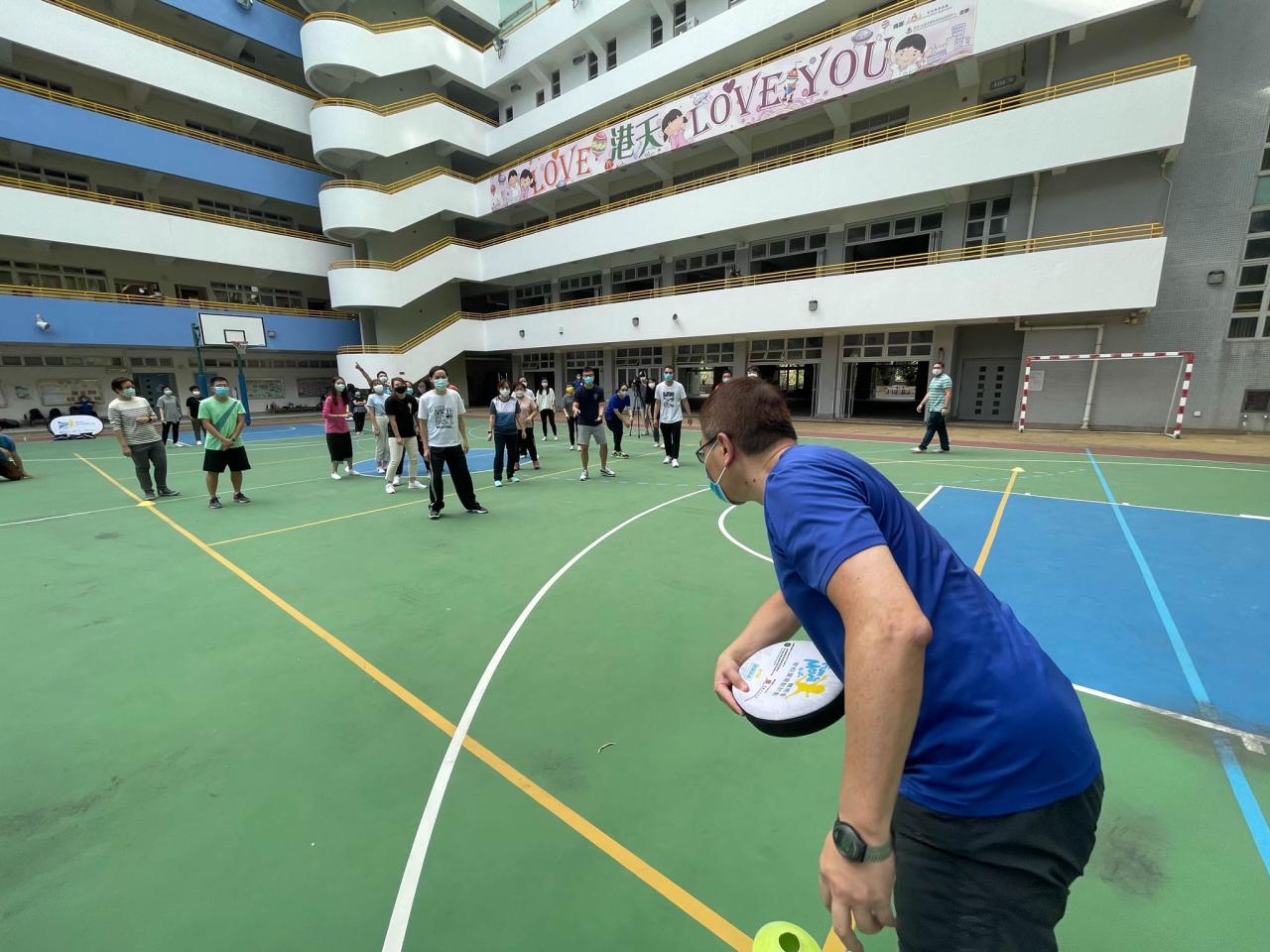 本校老師於18/11/2020下午進行了「閃避飛盤」教師工作坊,當日有兩位教練到校為老師講解「閃避飛盤」的技巧和比賽規則,並進行練習。老師們身體力行,鍛煉體魄,積極抗疫。