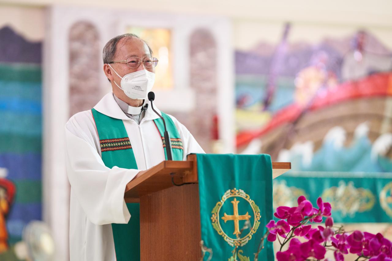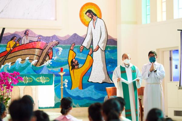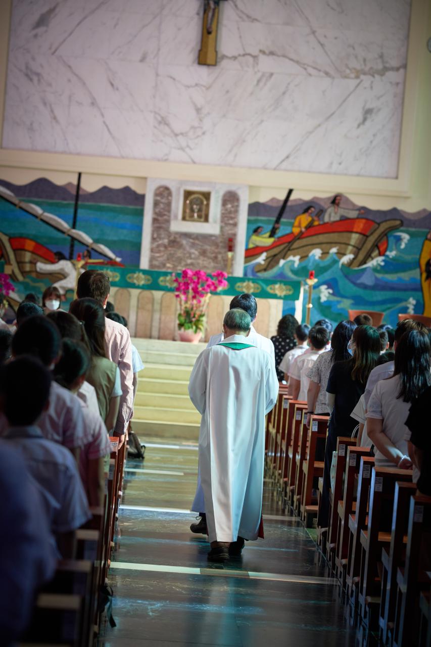 聖伯多祿中學許瀚賢校長擔任輔祭,他分享了自己十五年一貫的天主教教育對主愛的深刻體會,訓勉學生善盡責任與愛心,與主同行。