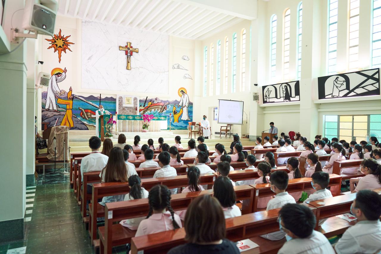學生隨即一起祈禱,並承諾會努力學習,為人生的總目標而奮發向上,並向主保聖伯多祿學習,敬主愛人。