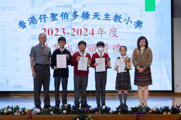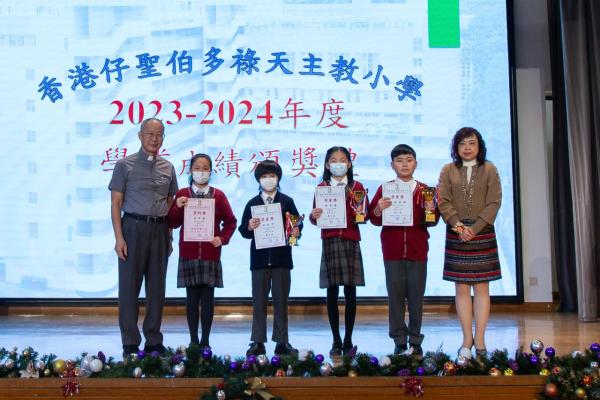 2023至2024年度家長教師會周年會員大會暨學業成績頒奬禮已於19/12/2023 (二)於本校四樓禮堂舉行。當天邀請了聖伯多祿堂主任司鐸簡立和神父蒞臨主禮,並邀請了校董黃施博執事 頒發學業成績及課外活動獎項。 頒獎禮後由本校榮獲第75屆學校朗誦節比賽中詩集誦(季軍)的中詩集誦隊進行表演。
