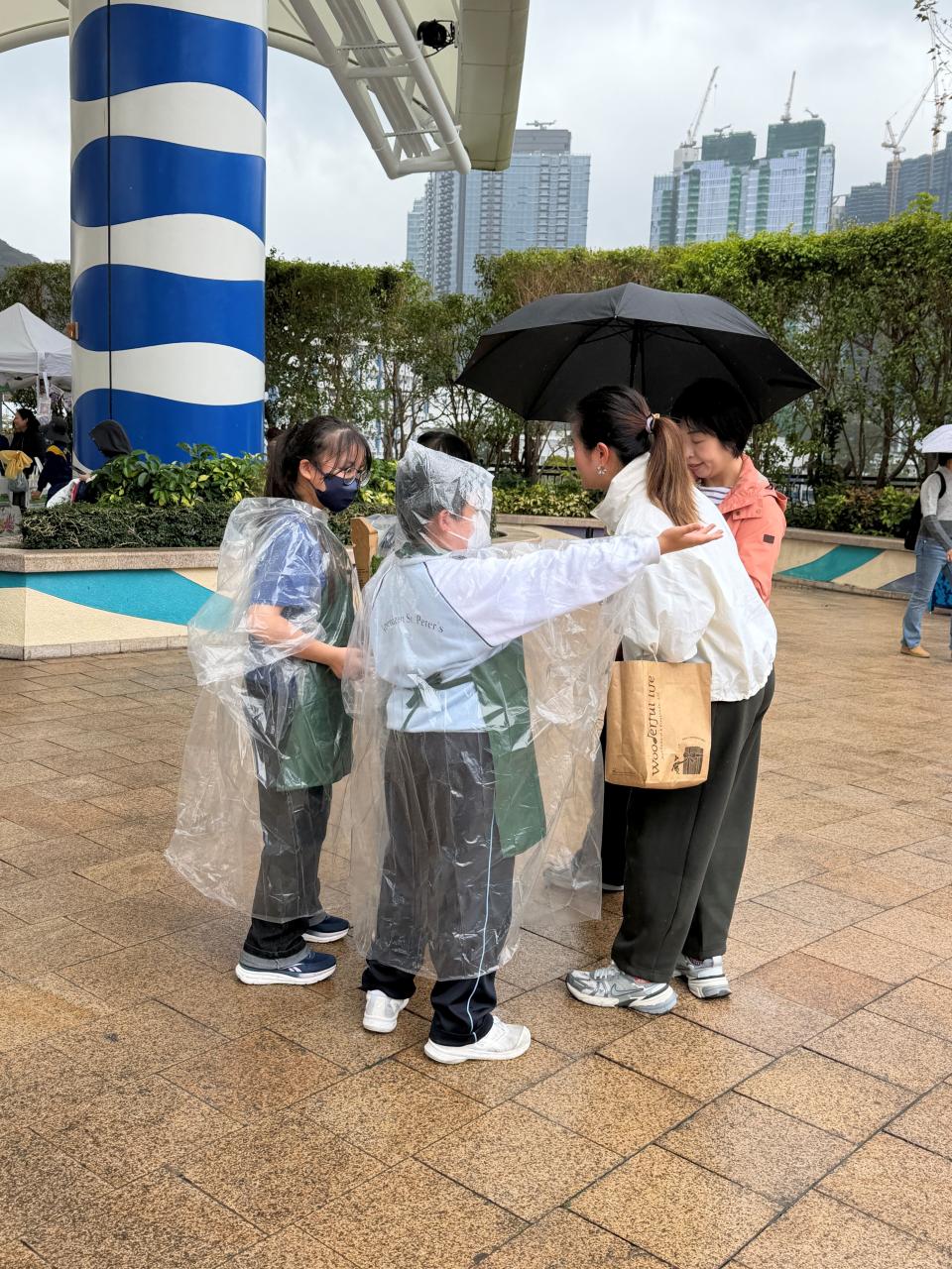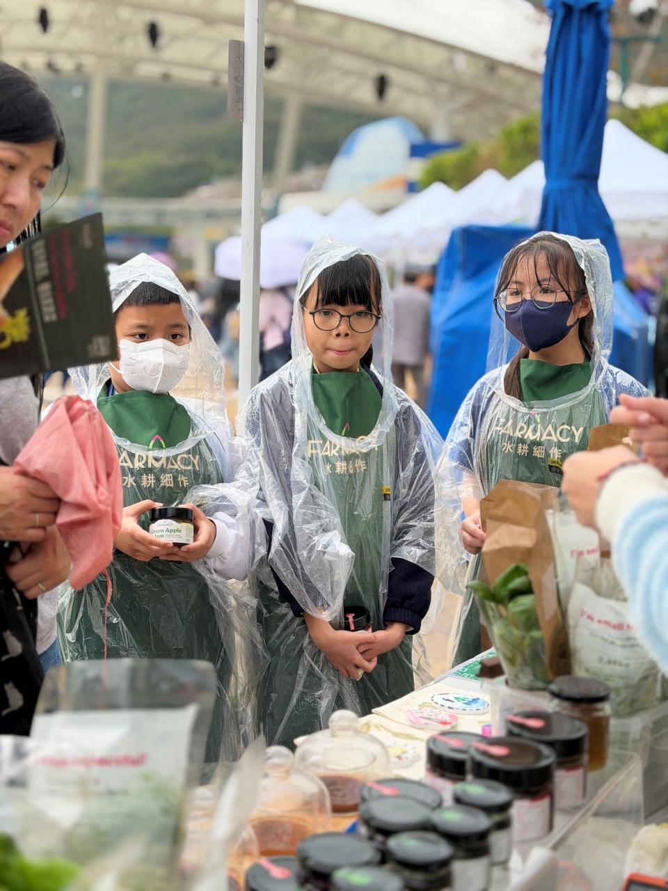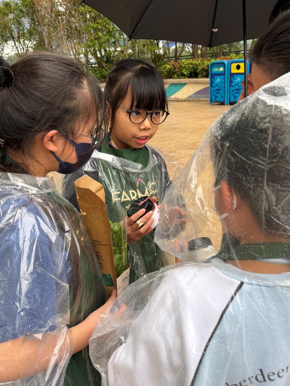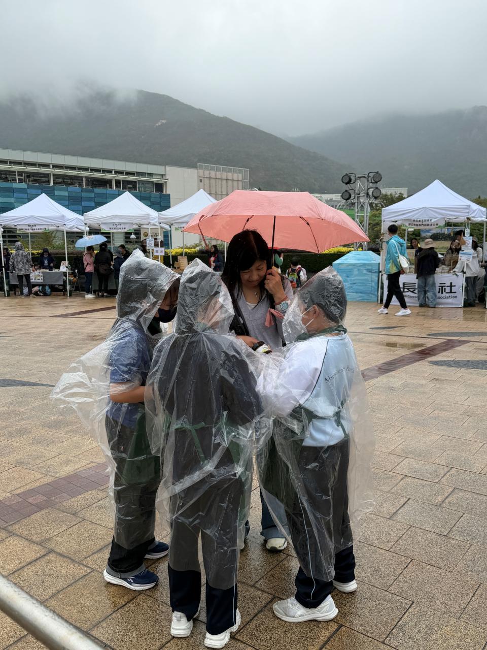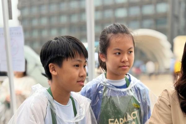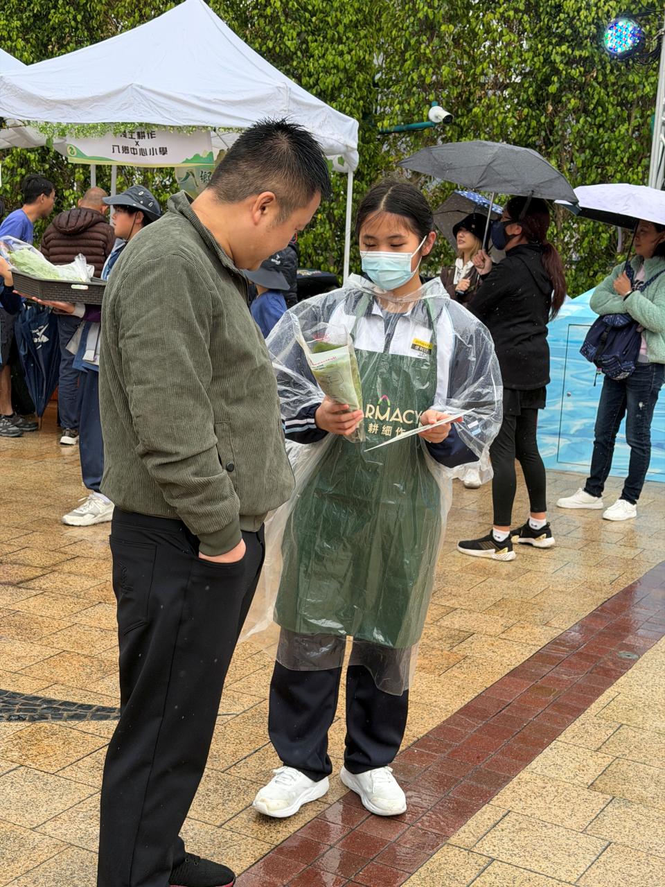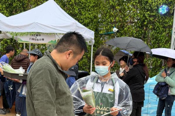 活動當日雖然遇上大雨,但同學們熱情不減,穿著雨衣主動走到廣場中央,向遊客積極推介自製商品。過程中,他們更勇於嘗試運用普通話及英語講解產品特色,展現出出色的語言應用能力與抗逆精神。