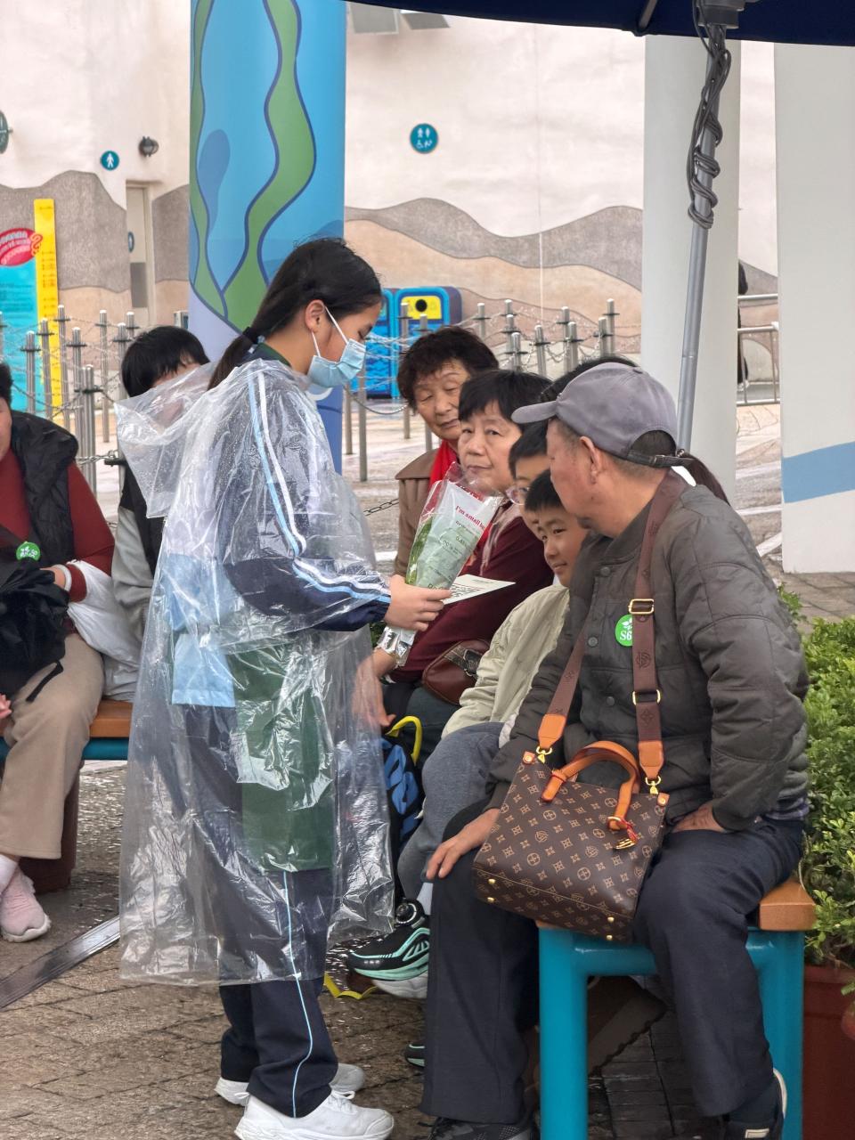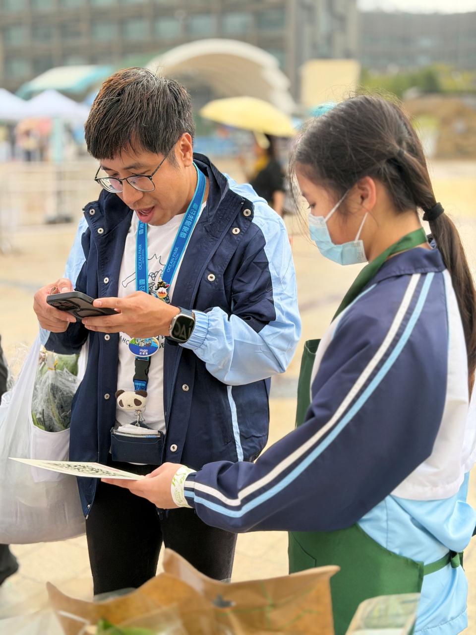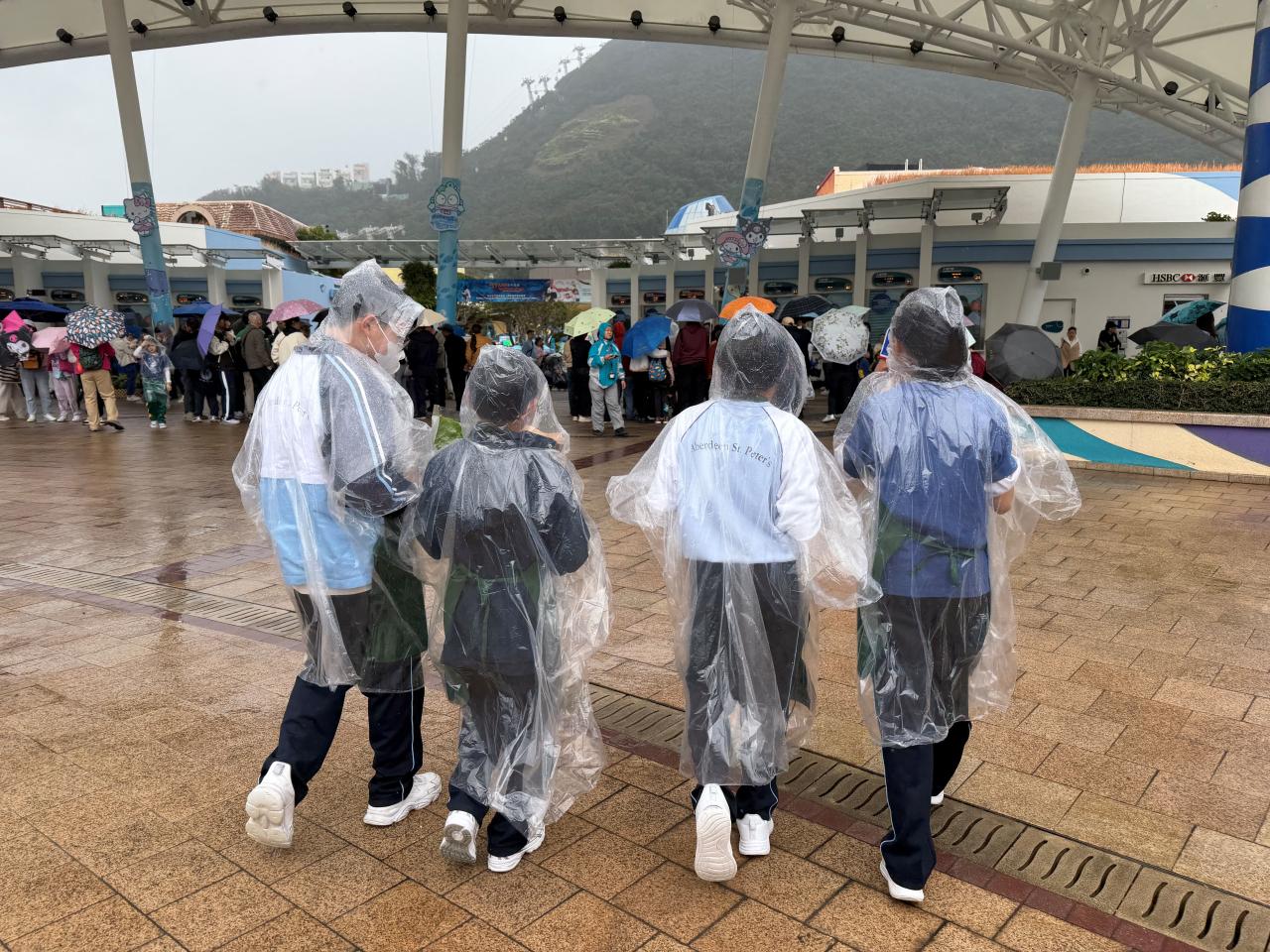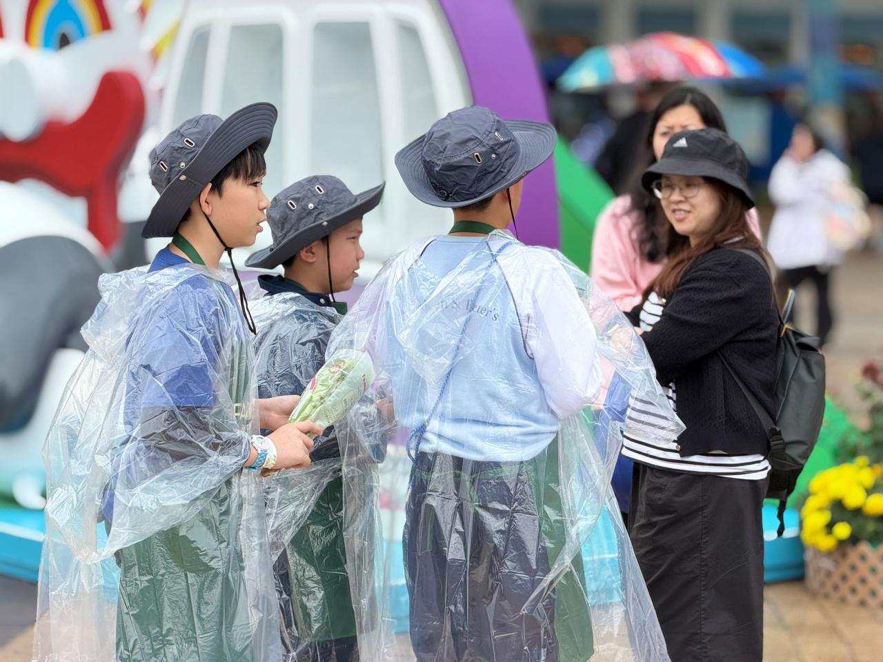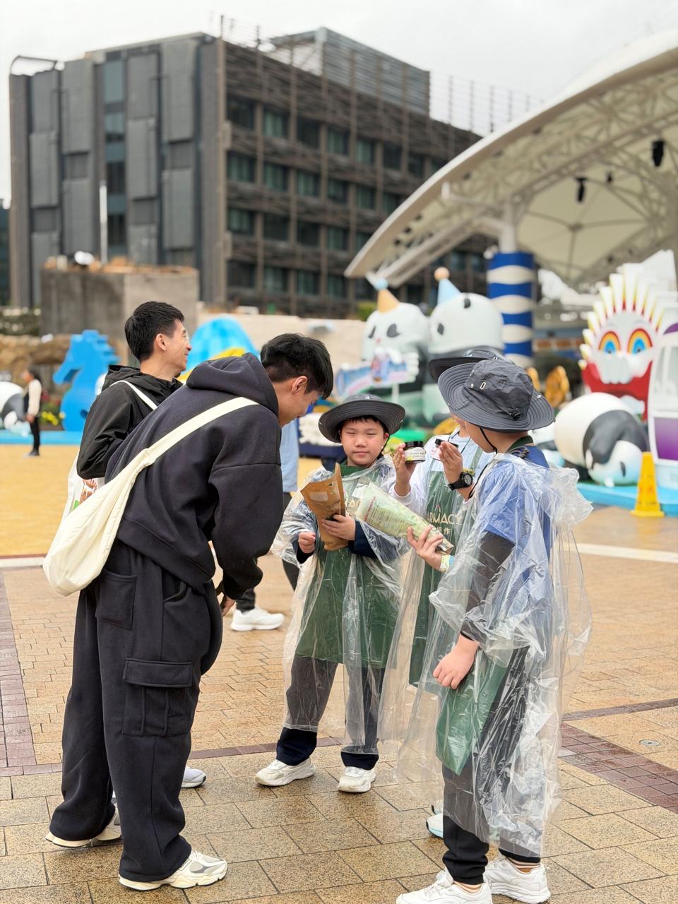 活動當日雖然遇上大雨,但同學們熱情不減,穿著雨衣主動走到廣場中央,向遊客積極推介自製商品。過程中,他們更勇於嘗試運用普通話及英語講解產品特色,展現出出色的語言應用能力與抗逆精神。